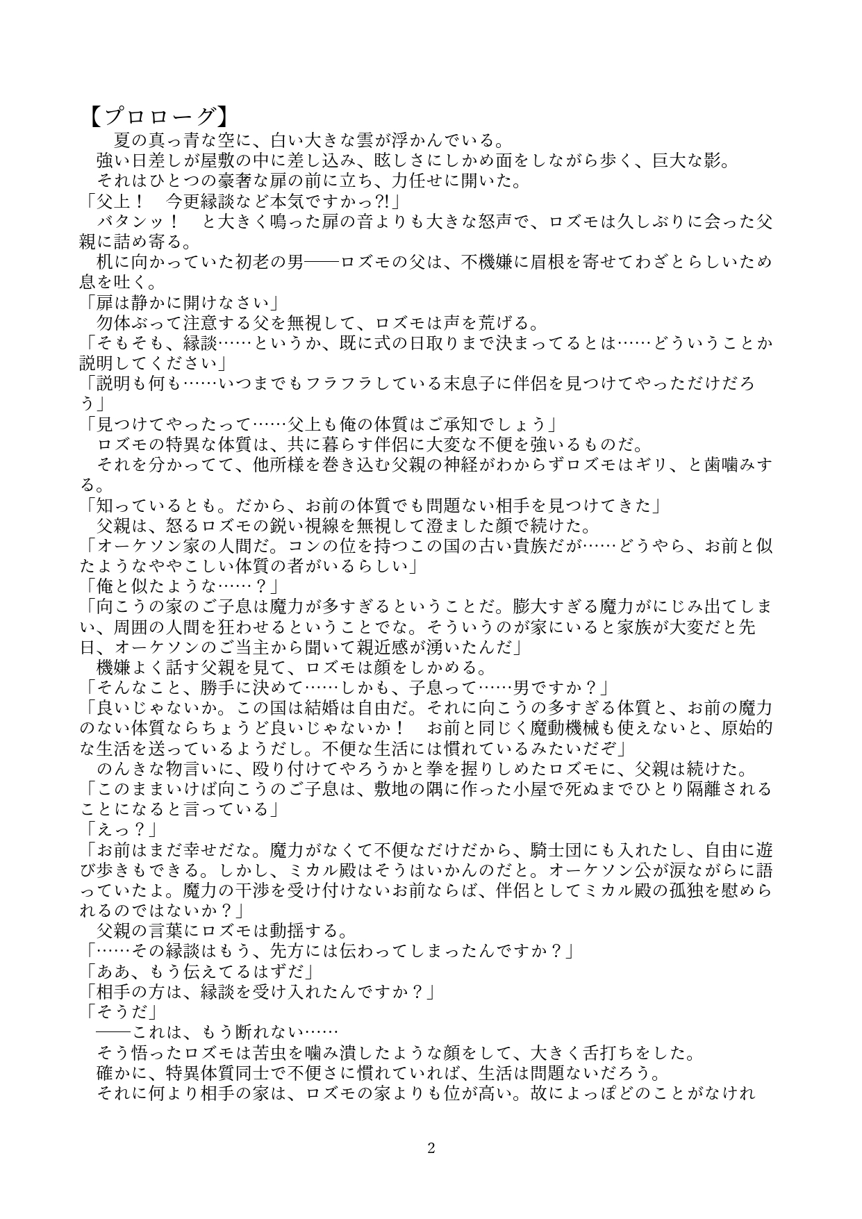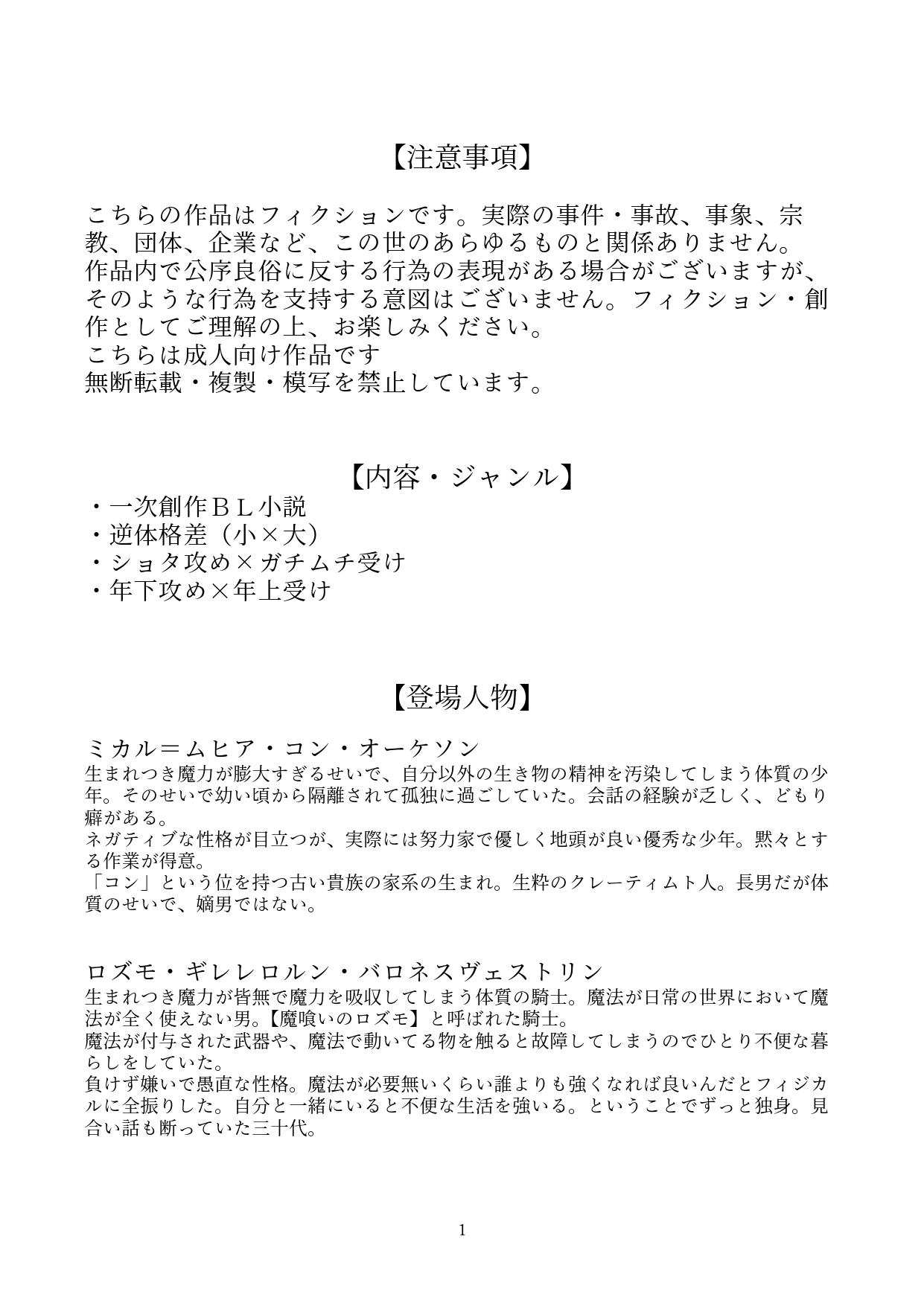 多すぎる魔力のせいで孤独になってしまったネガティブ美少年が、魔力なさすぎていろいろ不自由はあるけど筋肉とポジティブで生きてきた年上騎士と政略結婚して、魔力供給(意味深)したら互いの特異体質が普通になった!やったね!って仲良くなるイチャラブほのぼの話繊細ネガティブ美少年夫×ポジティブガチムチおじさん女房♂