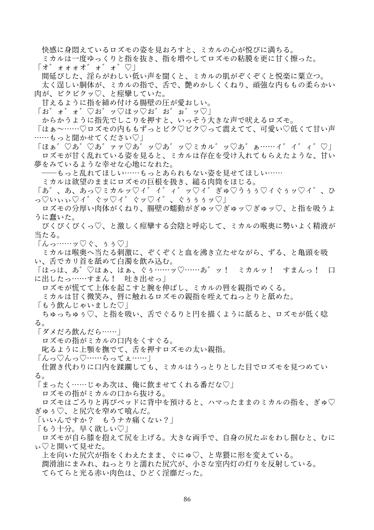 そして雄っぱいが……!可愛いと言われることに慣れてない主人公さんと、そんな主人公さんにきゅんきゅんしちゃう鬼。読んでみたら、えろい!顔のいい男が糞をするっていうのは良いギャップがあって好き。新作も楽しみです。今回は、媚薬の力で一時的に従属してしまうカレの姿が見れます。