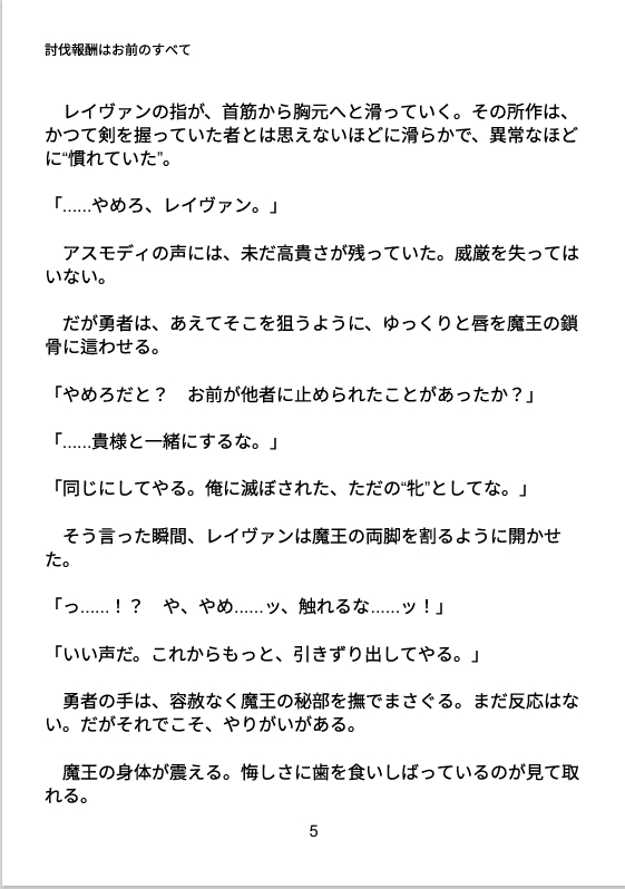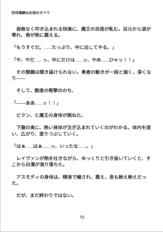 この物語は、魔王と勇者の関係が物理的、精神的に圧倒され、変容していく過程を描いた成人向けBLファンタジー。支配と反抗、快楽と苦痛、そして誇りの喪失と心の葛藤が交錯するストーリーです。強靭な意志を持つ魔王が最終的に壊れていく過程は、快楽に抗えない彼の心と身体を鮮烈に描きます。