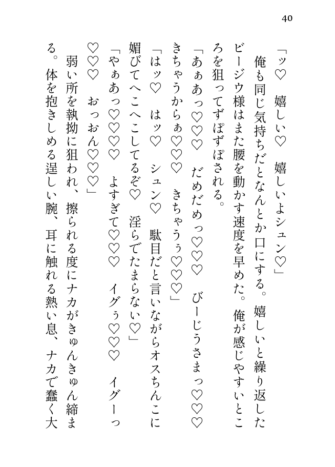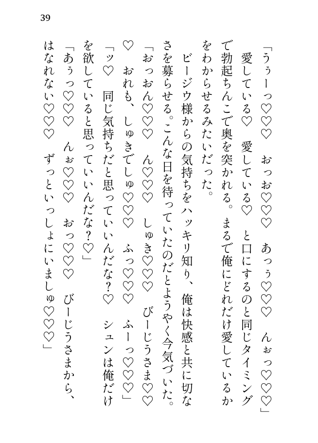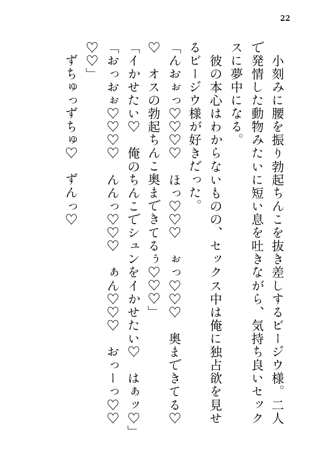 おすすめ!女性器表現や口の軟化などの分量は少な目なのでメス堕ち濃度は比較的薄い方かと。幸せラブラブな二人の続編を出してくれたら絶対買う!まだ購入していない方でも十分楽しめるストーリーとなっています!そのお陰でエロさが増し増し。と思うくらい内容が濃くて最後の方泣いてしまった……!