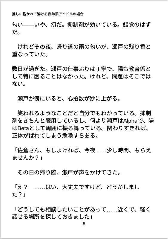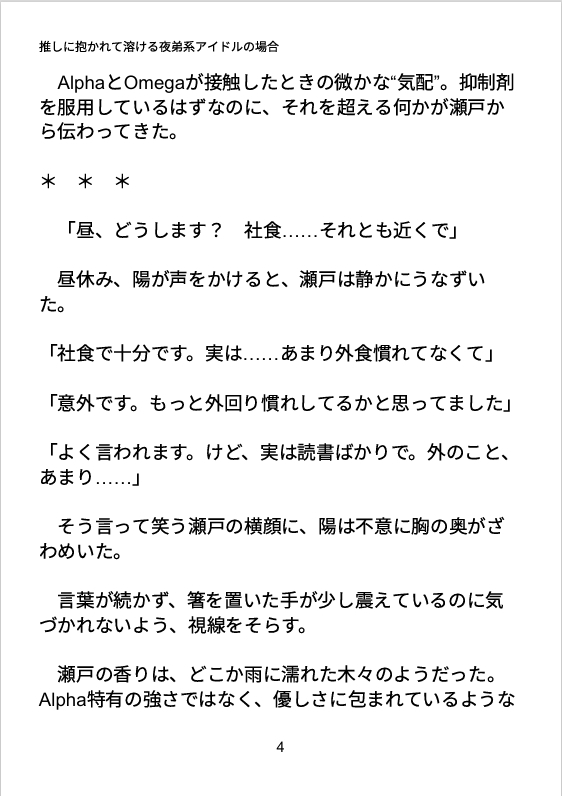 現代オメガバースを舞台に、“番”という運命よりも、自らの意志で結びつこうとする青年たちの、やさしくも切ないラブストーリー。