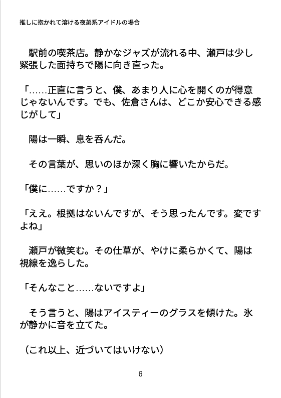 ふたりの幸せを願う余韻も少し残してくれる、この感じ。うけ顔がとてもエロいです。リピ確定です!受けちゃんの、トロトロ顔も可愛いくて、完で持ってても単話で加筆されちゃうと買ってしまう笑エッチシーンはかなり興奮しました。アナニーのし過ぎで後ろでしかイケなくなったので、代わりに主人公のペニスをディルド代わりに使わせろと言い出します。