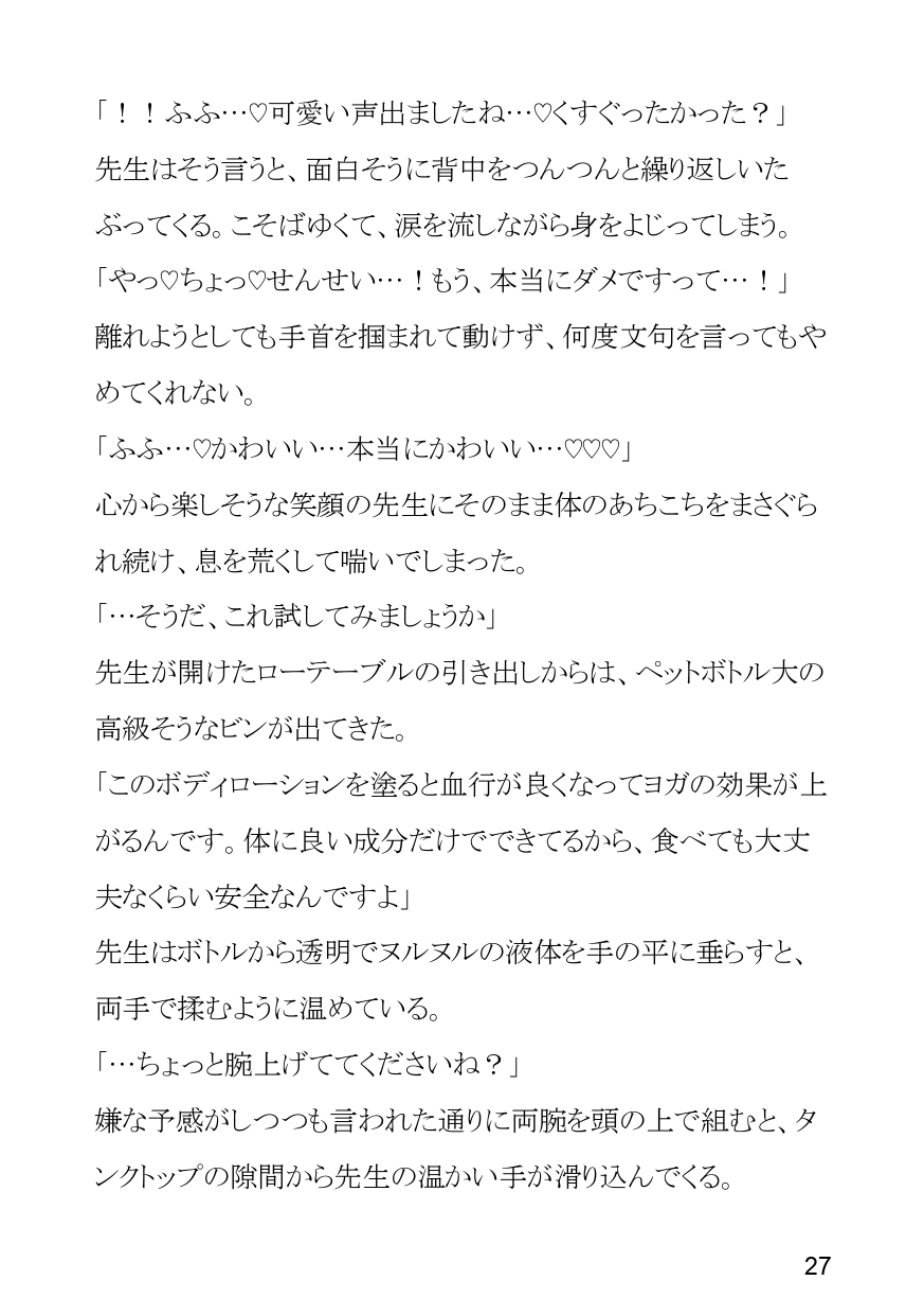 前半:スタジオでのグループレッスン中に濃厚密着個人指導後半:先生のお家でヨガマットの上でヌルヌルローションプレイ