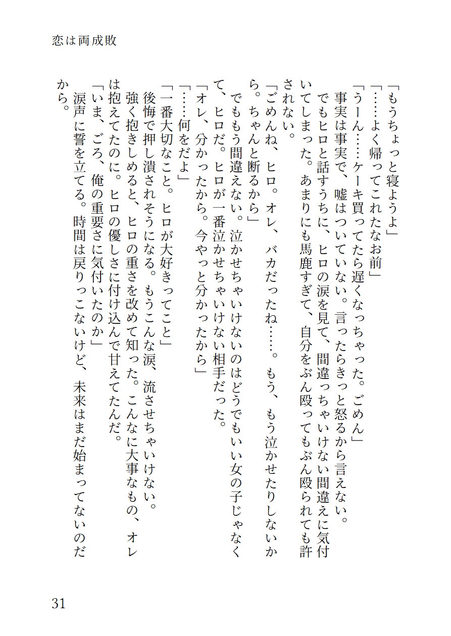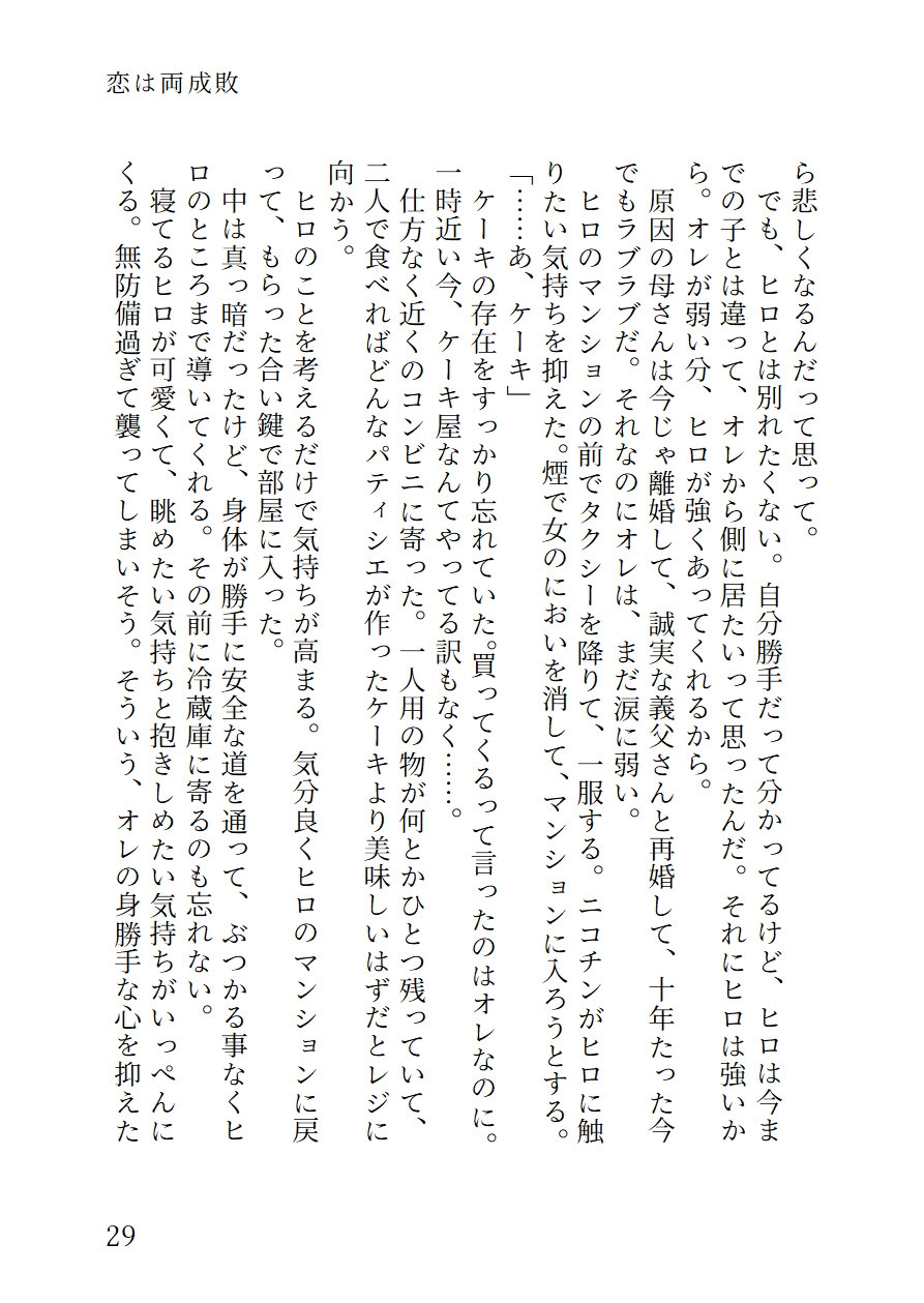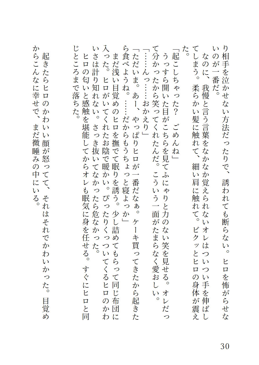 以前紙(A5サイズ)で発行した物をA6サイズに変更した物となります。3話で構成されており、受け視点、攻め視点があります。ほぼサンプル(濡れ場以外)で読めます。性的描写少なめですが、1.5回くらいしています。※受けが攻めにちょっぴりお仕置きします。