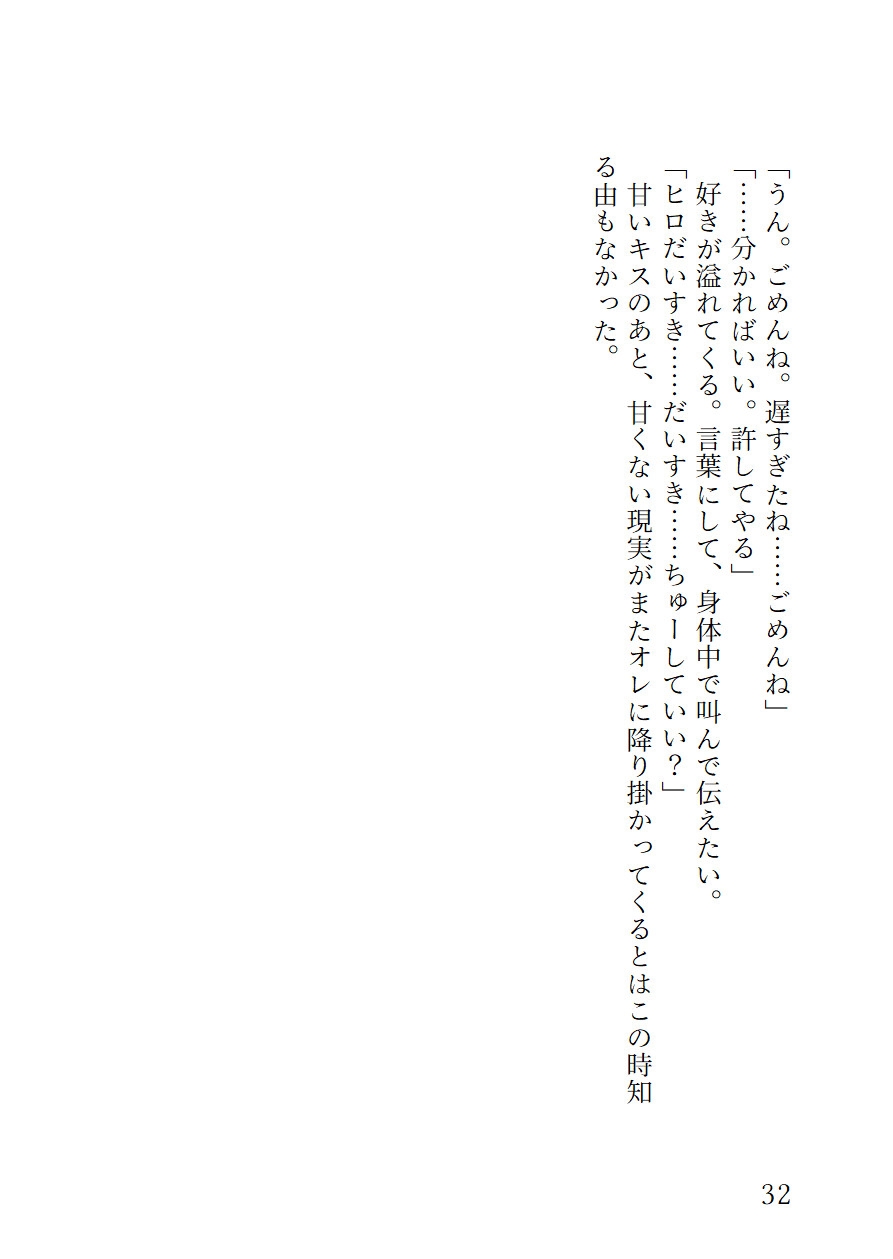 すぐ物語が始まり、初っぱなから盛り沢山。一応続きものですが、単体でも読めるとは思います。体位も多様。仰向けになった友人の身体の上でヌチヌチと腰を振る主人公のマットプレイが最高でした。想像よりだいぶ甘々なラストで大満足です!グッドエンドバージョンをずっと楽しみにしてました!