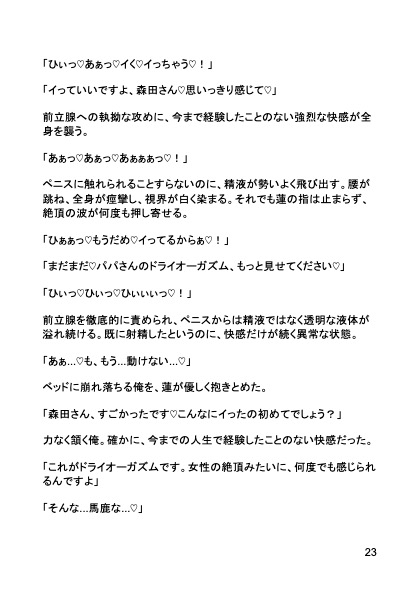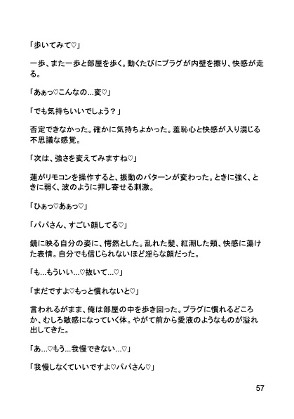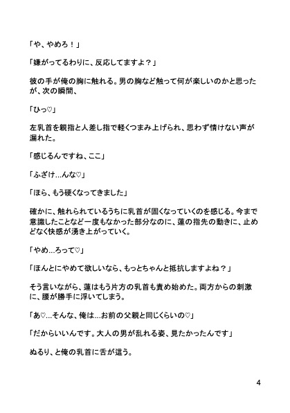 ある日、家に一人でいた大輔は突然訪れた蓮に強引に迫られる。抵抗する間もなく、かつて感じたことのない快感に身を震わせ、自分の中に眠っていた欲望に気づかされていく。乳首開発、前立腺責め、拘束プレイ…若い男に開発されていく成熟した体は、徐々に彼専用の淫らな玩具へと変貌していった。