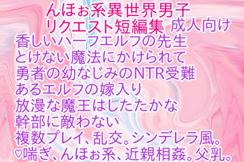 んほぉ系異世界男子リクエスト短編集複数プレイ、乱交。シンデレラ風。♡喘ぎ、んほぉ系、近親相○。父乳。WEB掲載あり。