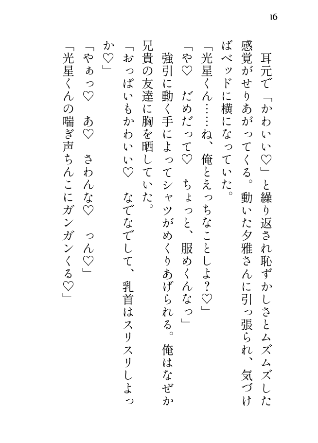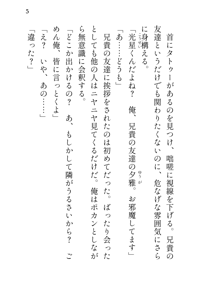 兄と友達たちがコンビニに行き、家には夕雅と光星二人になる。光星と話したいからと部屋に入ってきた夕雅は突然キスをしてきて――。