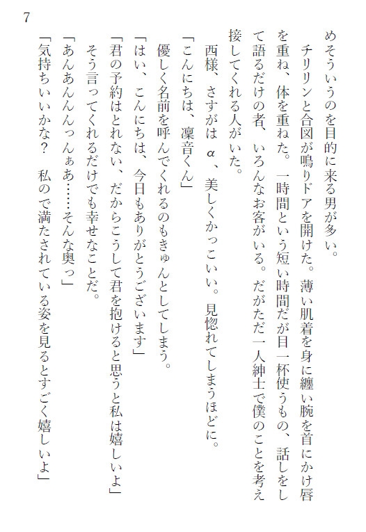 ・西祐二(にしゆうじ)αΩ風俗で凜音と出会い、予約が空いている時は凜音の元に通う。涼真の秘書。