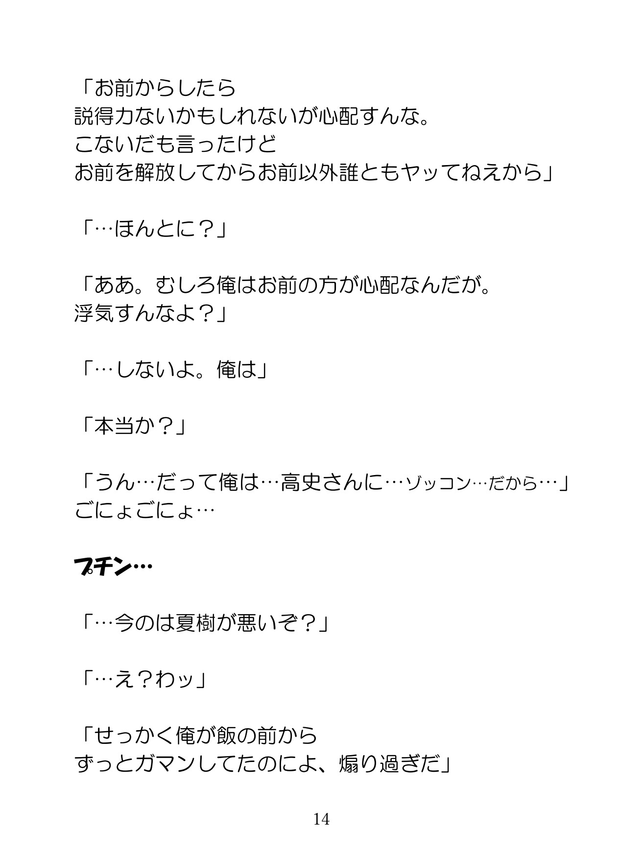 知り合いがすぐ近くにいる為にイっても声をなんとか押さえてる痴漢OK男子がとてもエロかったです! 一つ気になったのは、主人公の喘ぎが前回より大人しめ?おさえめ?に感じました。