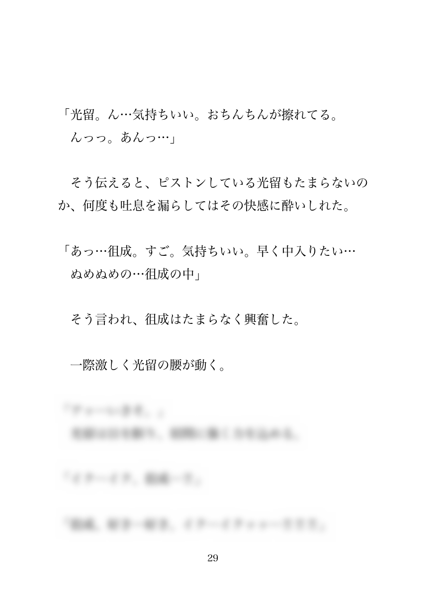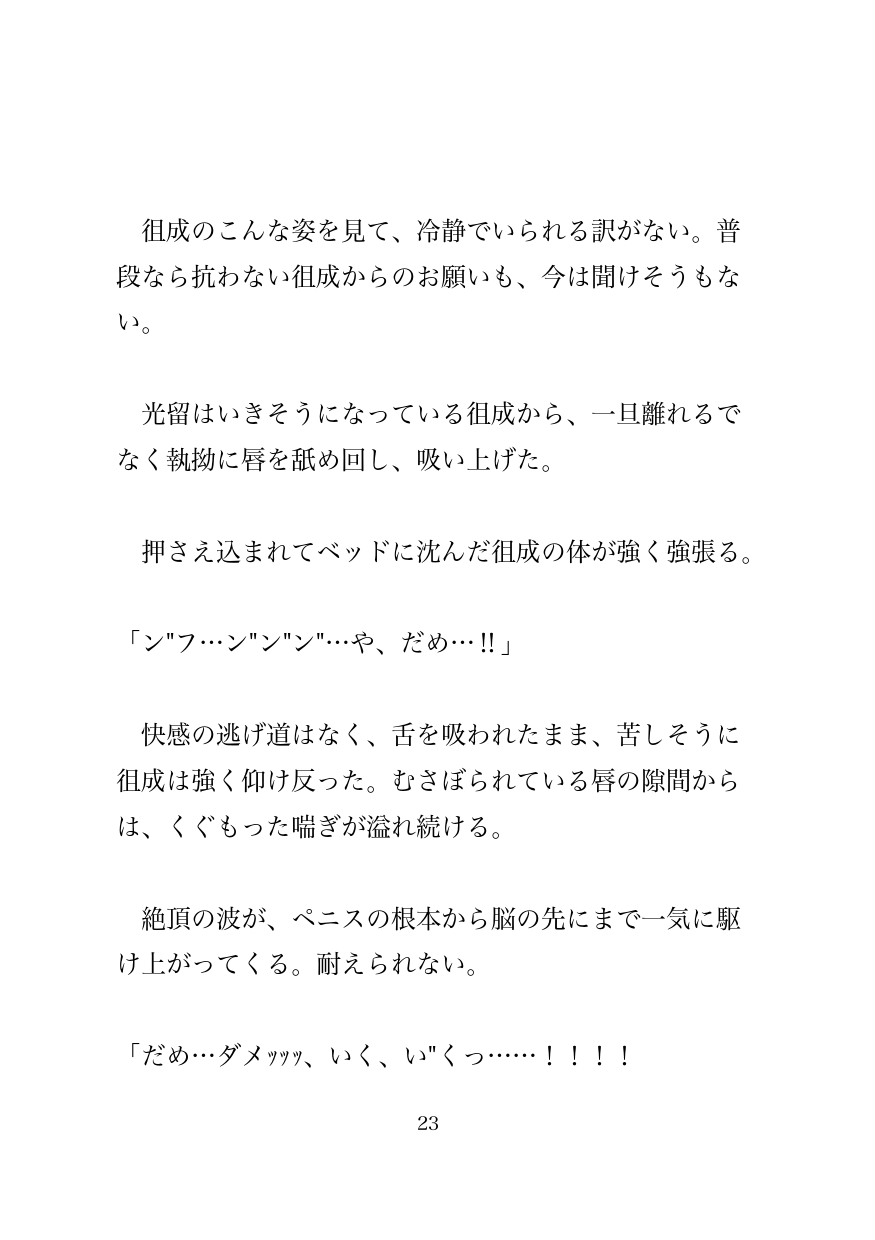 「ん、ゆきなる。ん…やだ、吸って…」眼下ではぬるついたペニスをゆっくりと扱きながら、光留がとんでもないことを口走っている。