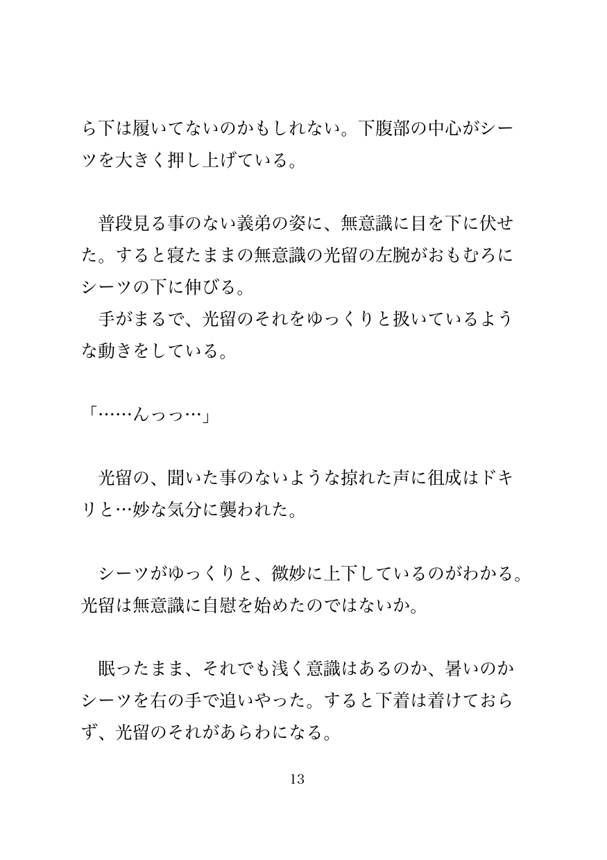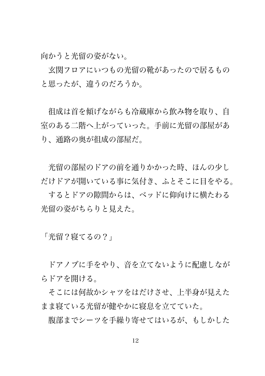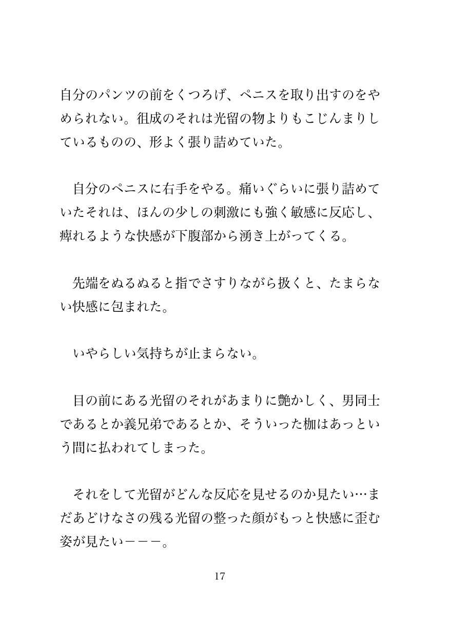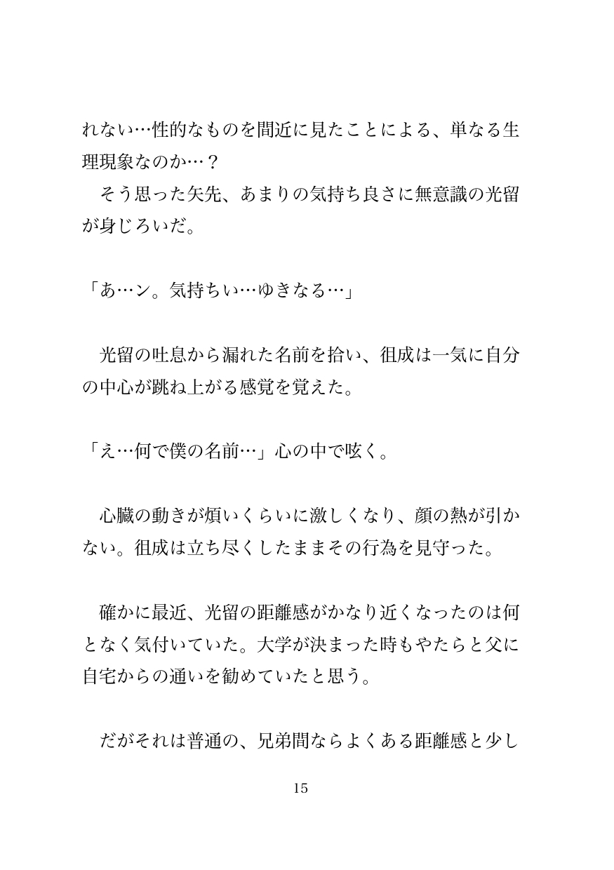 一番混乱しているのは、この光留の姿を見て、引くどころか興奮している自分だ…。わからない…光留は可愛い弟で、それなのにこんなに昂っている自分は一体何なのか。