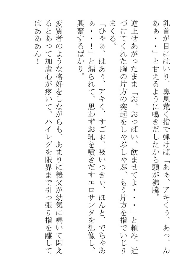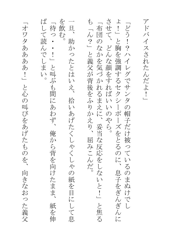 続きを読む短編集「ハイレグエロサンタは義理の息子に跨がって義父のわがままボディを捧げちゃう」の評価