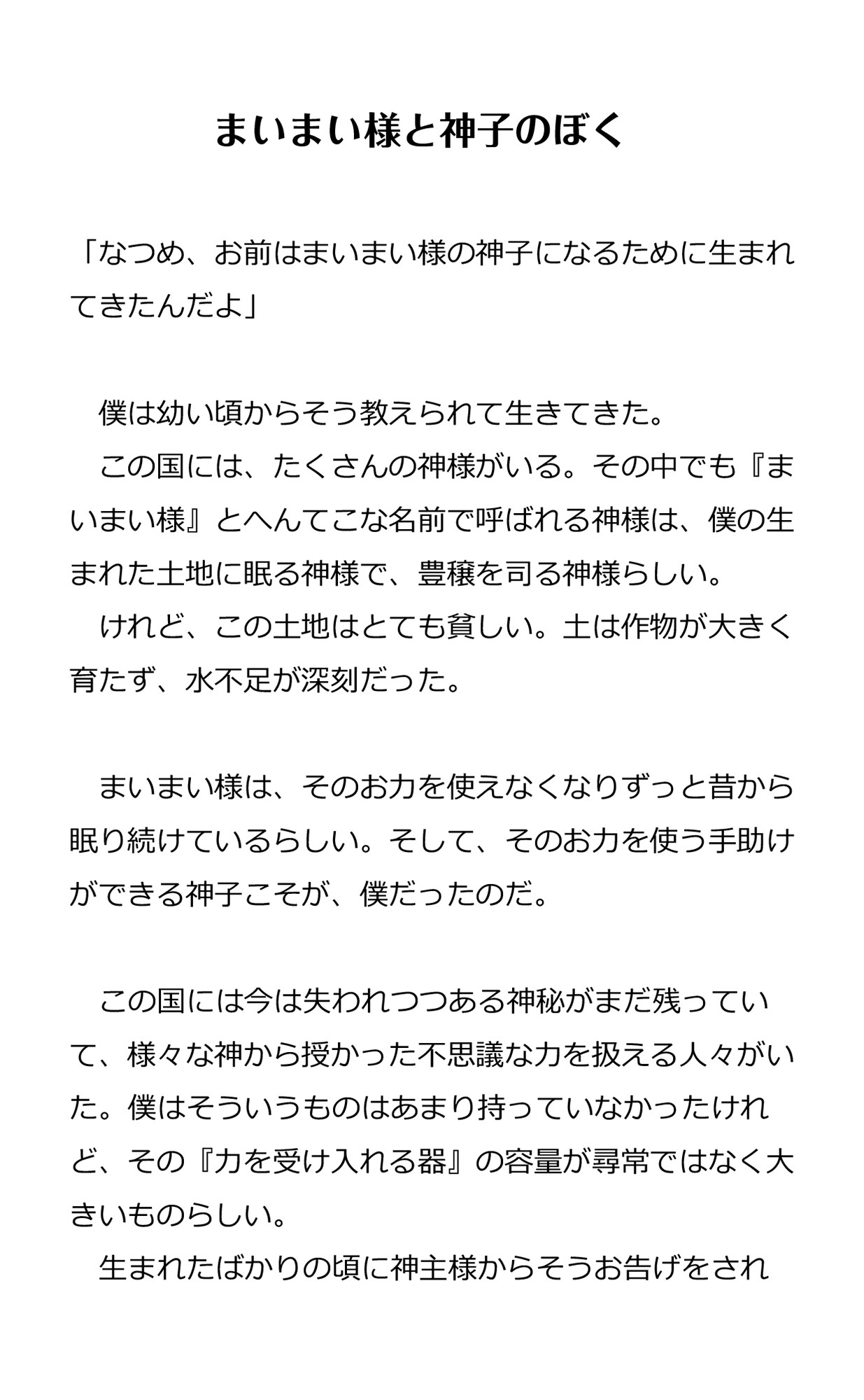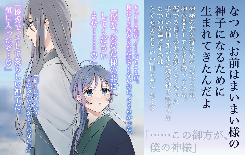 力を使えないぽんこつ神様と、その神子として仕える少年なつめの物語、第一弾。