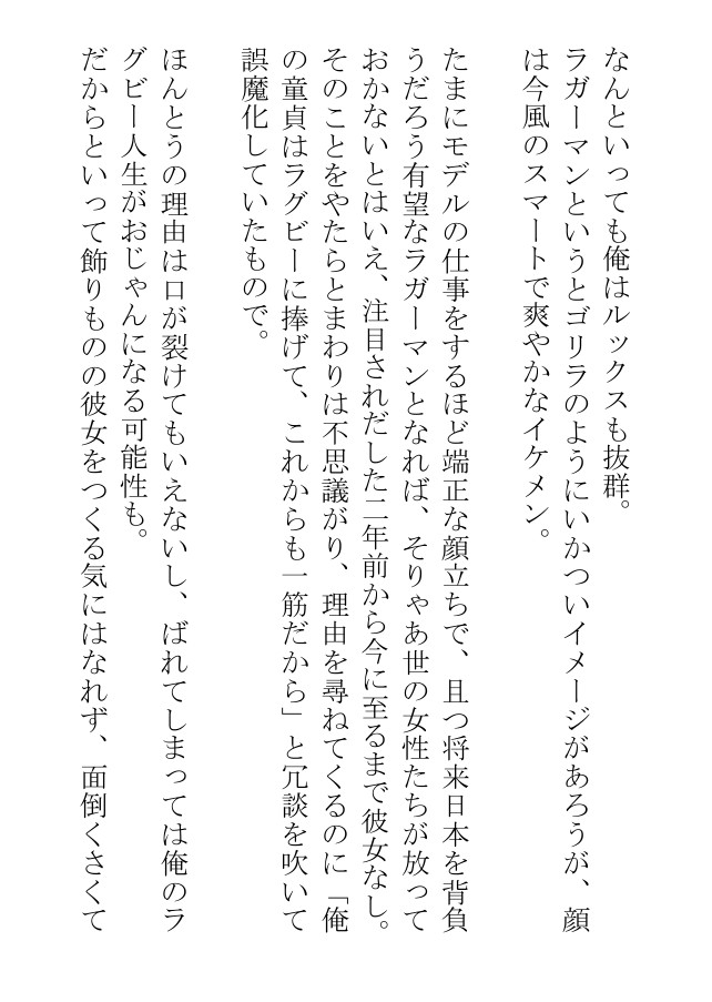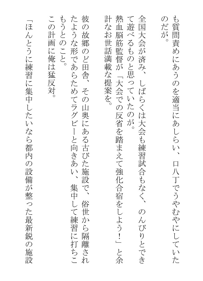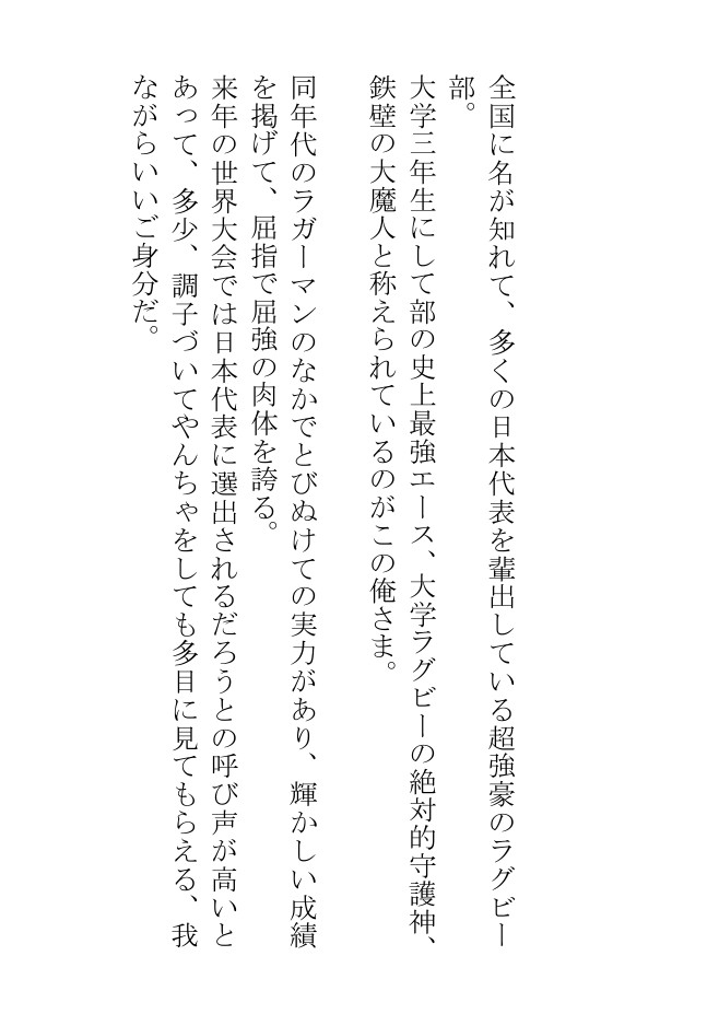 現代ものすこしホラーなガチムチ受けBL小説です。R18。村の男たち×生意気ラガーマン、鬼×生意気ラガーマン。