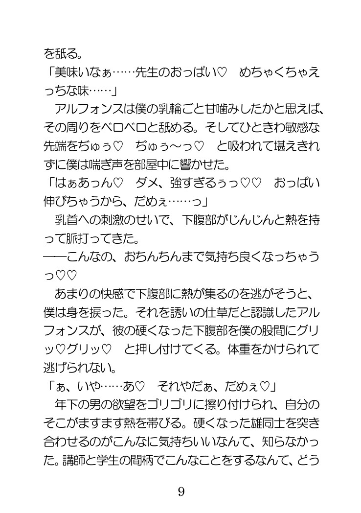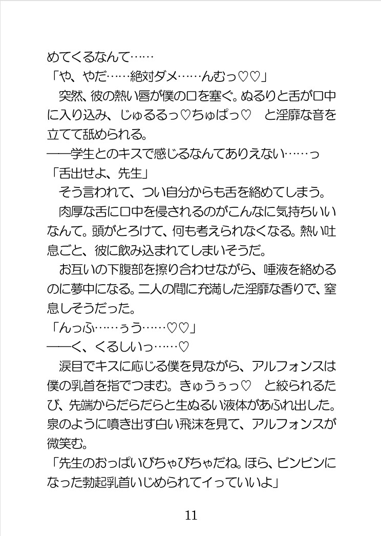 【攻】アルフォンス・ラブレー(19歳)王立学院5年、攻撃魔法科所属。ファタージュ王国の第三王子。ハルマが母乳体質なことを知り執着してくる。貧乳が好き。 ・ハート喘ぎ・言葉責め・乳首開発・母乳・搾乳プレイ・手コキ・連続絶頂・攻めフェラ・快楽に弱い黒髪美人受け・超美形な金髪王子だけど変態な攻め・下品な淫語の飛び交う魔法ファンタジー世界へようこそ! ノンケ受けが強引な攻めにメス堕ちしていく過程を丁寧に書いていますのでお楽しみください!エッチシーンだけでも楽しめるので、途中を飛ばして読んでもOK♡体験版もご用意していますので、チェックしてみてください!