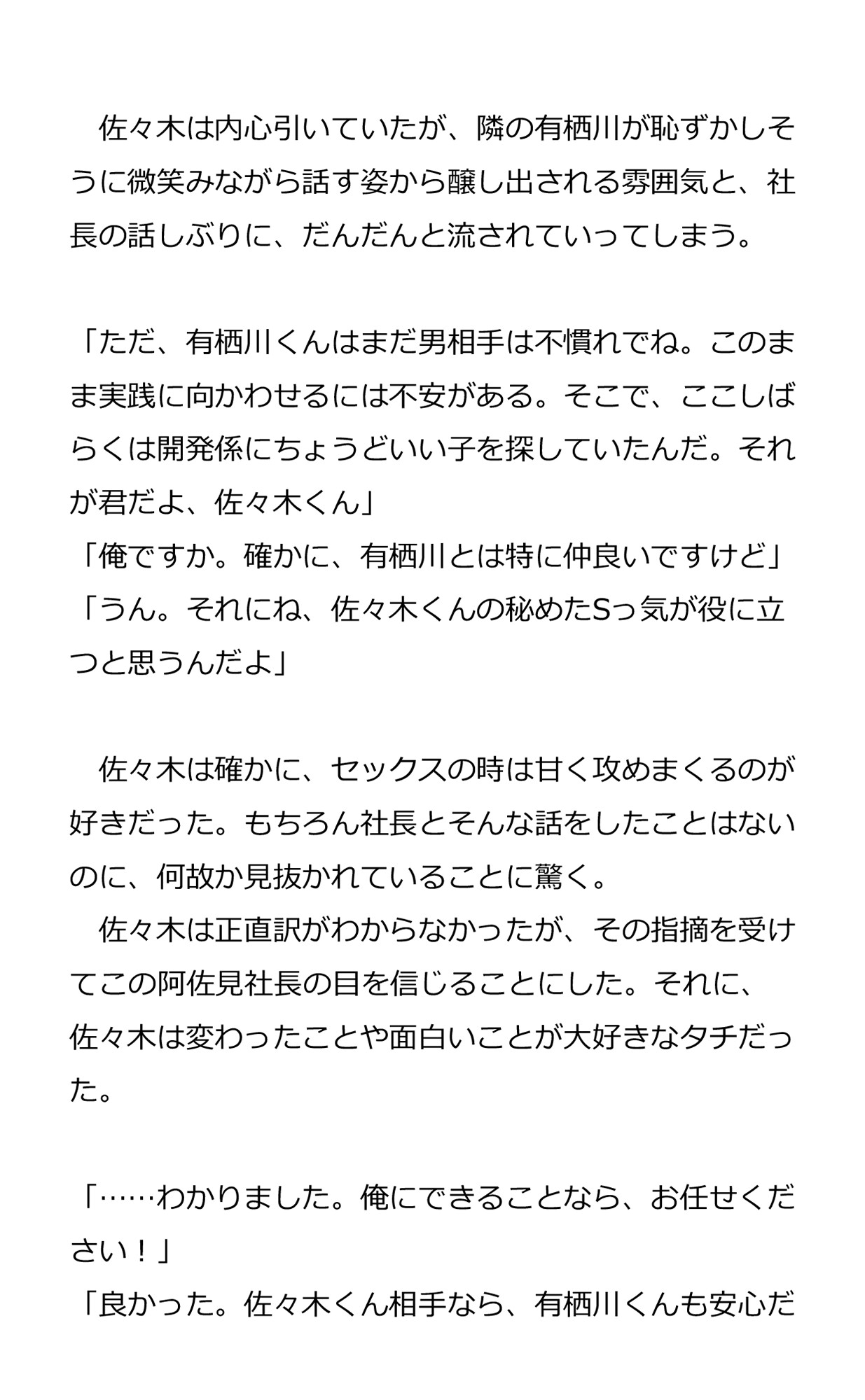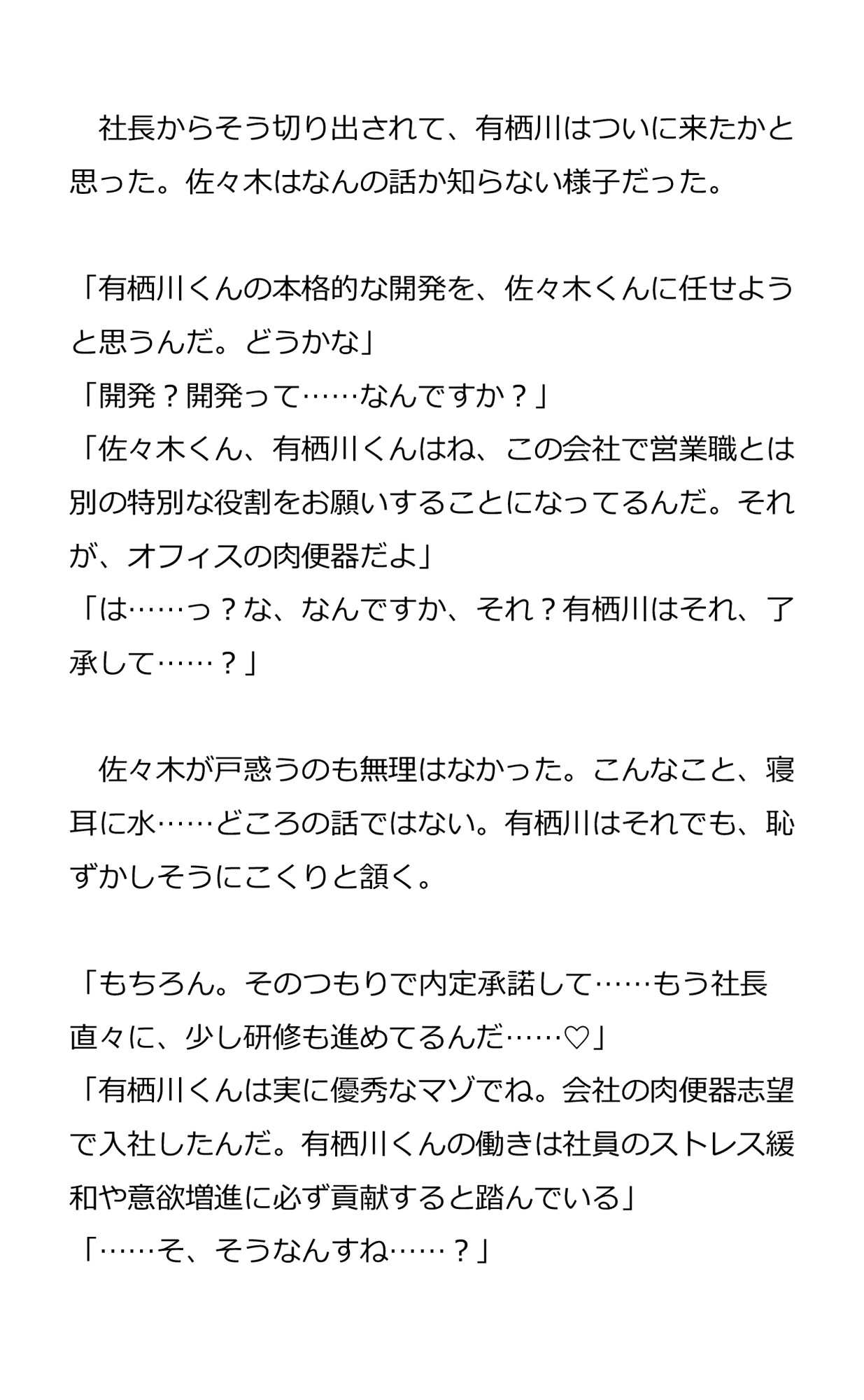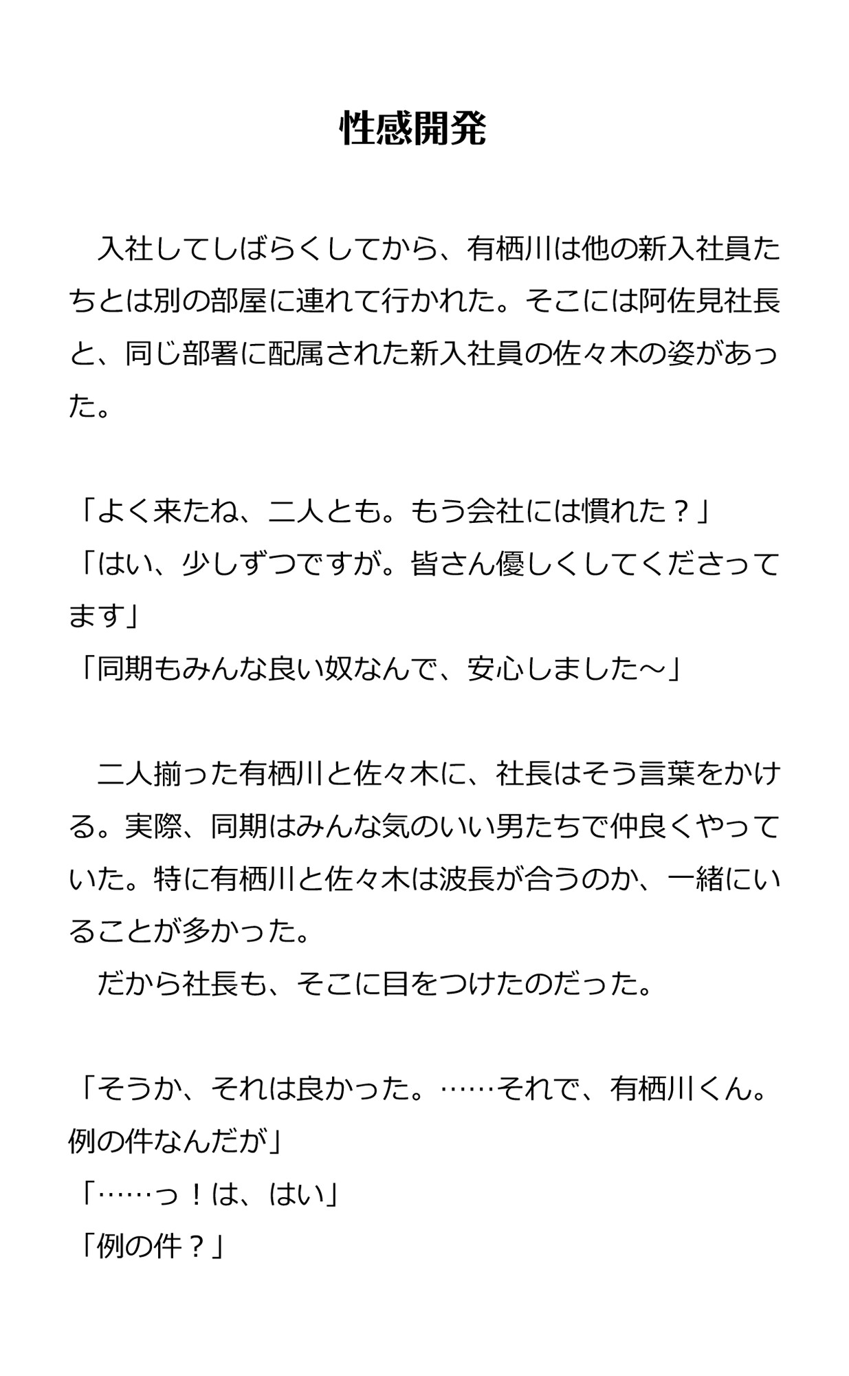 爽やか系イケメンエリートが社内で『愛される』存在になるまでのお話。同僚の佐々木による性感開発と、社内デビューの様子をえがいたスピンオフ作品。一作目の「淫乱エリートは…」の過去のお話になります。