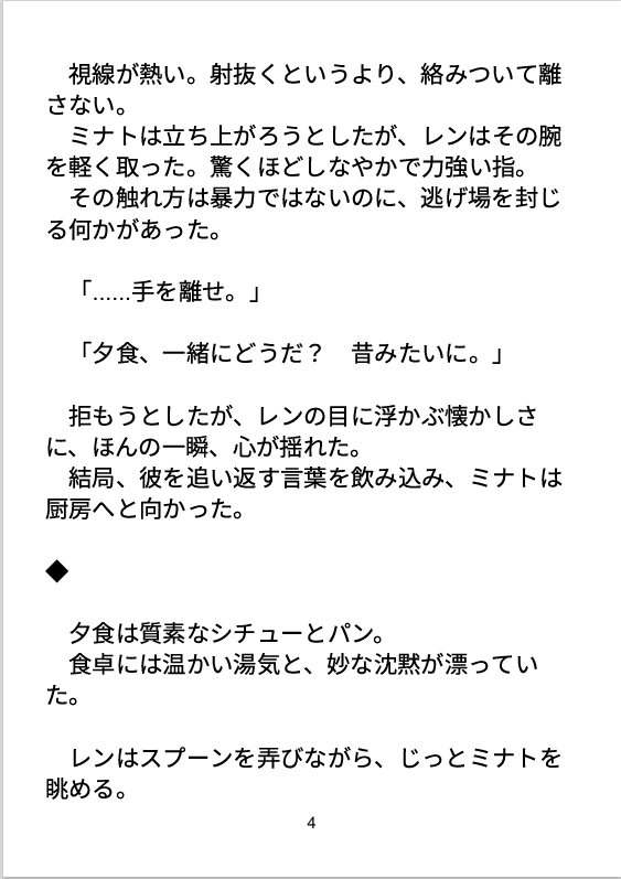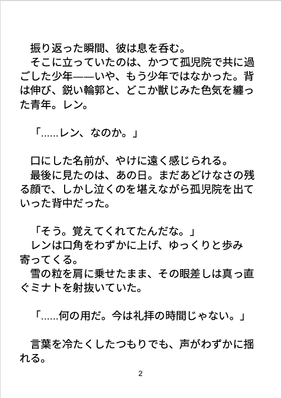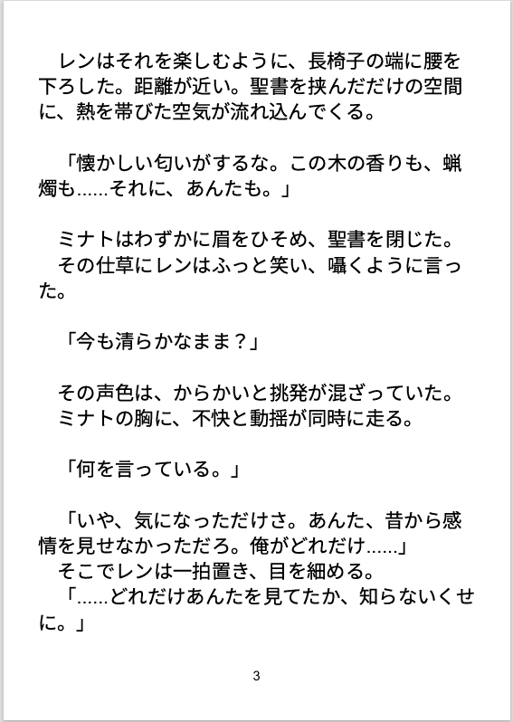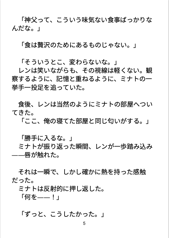 ■登場人物ミナト(受)/32歳/神父幼少期の罪をきっかけに神に仕え、感情を抑えて生きる。清廉で穏やかだが、心の奥に深い孤独と渇きがある。元孤児で、他人との距離が近づくと本能的に拒絶してしまう。