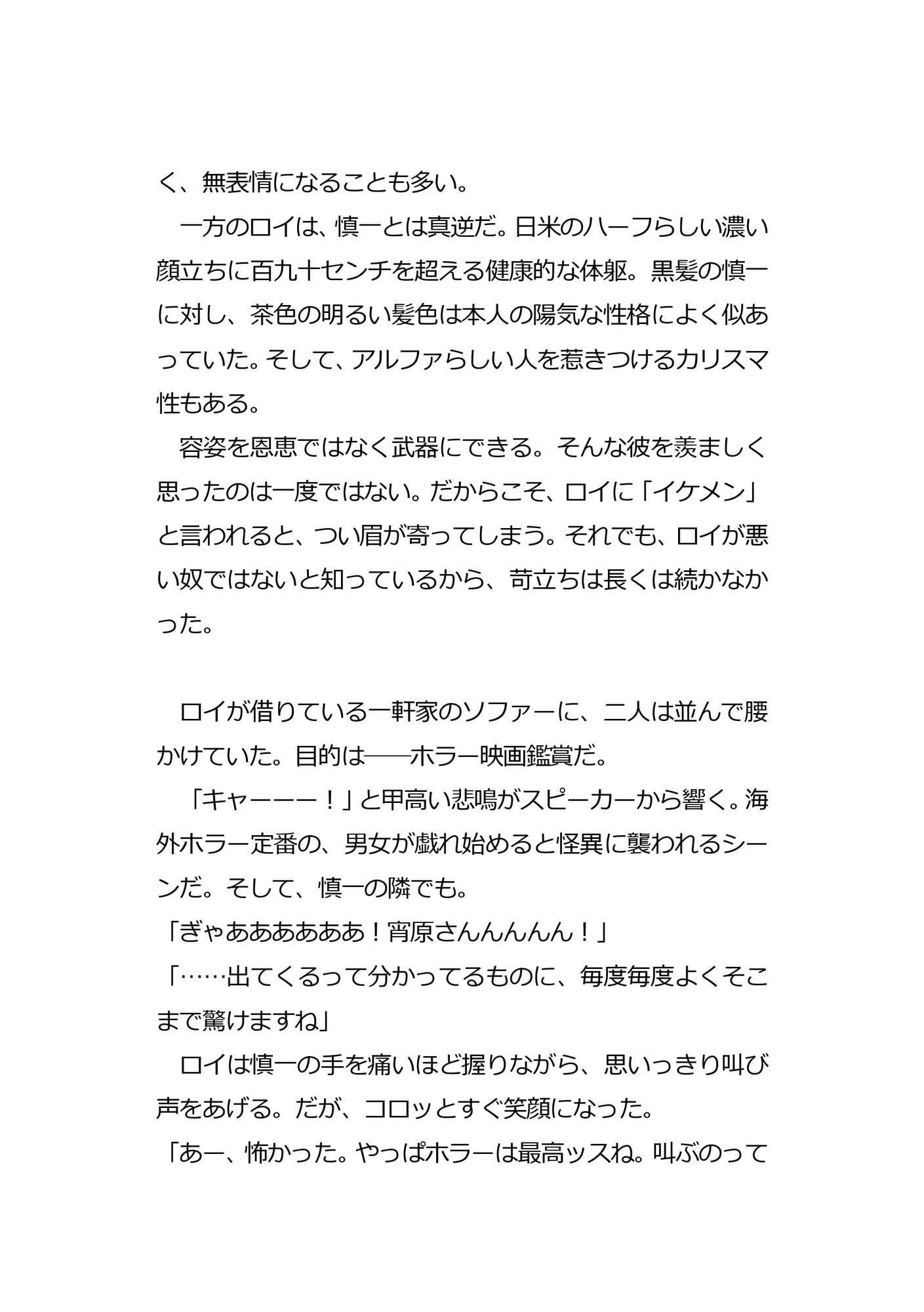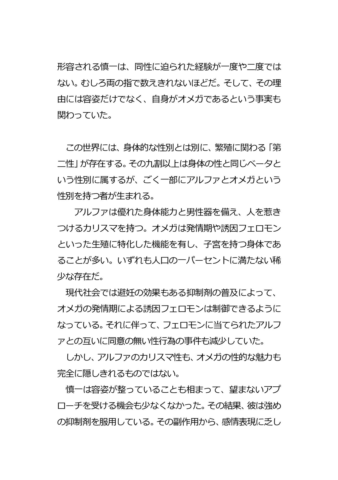 作品内容の紹介で興味が沸いたら、購入して損なしというか、是非読んで欲しいです。 最終的にはハッピーエンドで終わり、受けは希望を掴み、攻めは運命を掴みます。