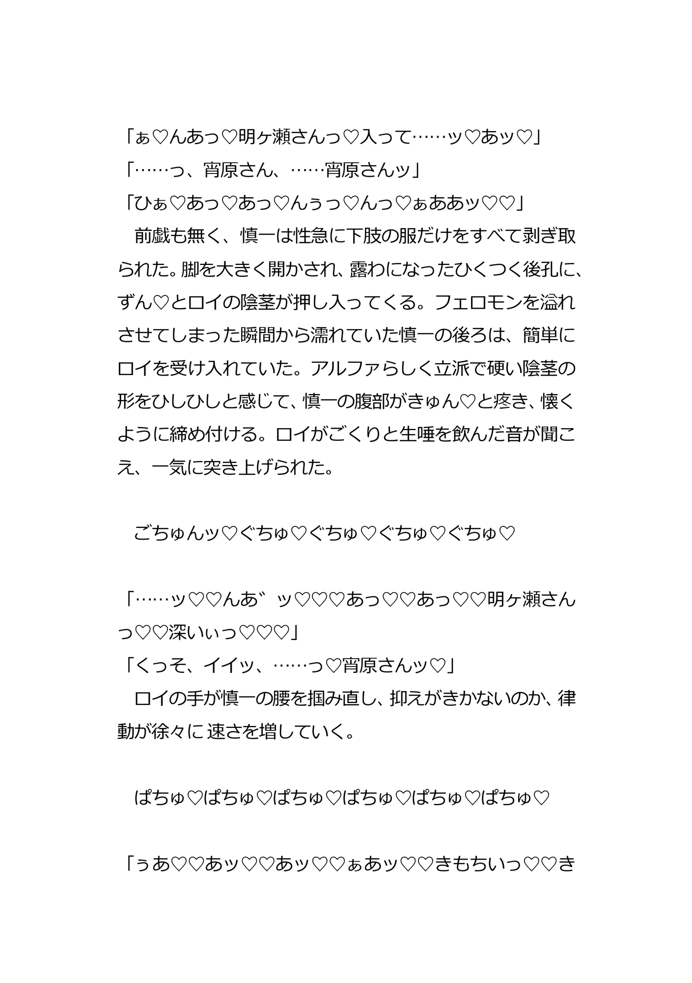 ・現代、会社同僚オメガバース・陽気アルファ×冷静オメガ・乳首責め/中出し/妊娠・孕ませ・本文約10000文字(内、濡れ場約6000文字※♡、濁点含む)