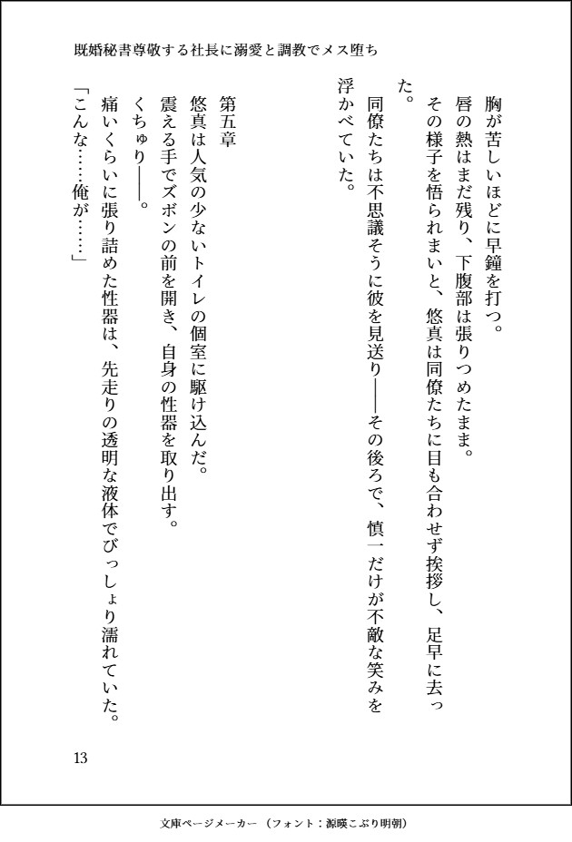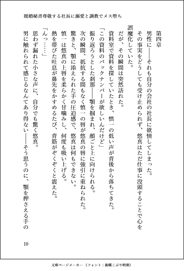 真面目な既婚秘書・橘悠真は、自分が仕える社長・神崎慎一に犯されてしまう。
