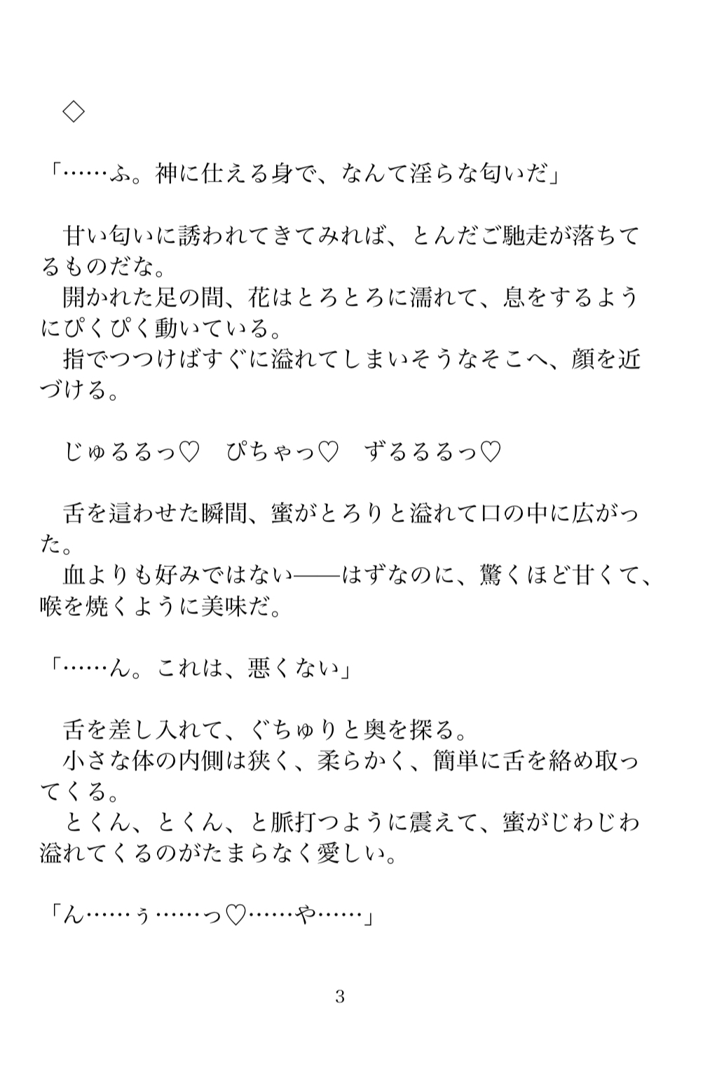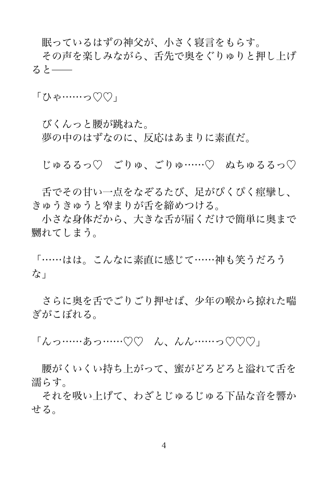 神父の少年はカントボーイであり、日々性欲から逃れられずにいた。ある日オナニーしたそのまま寝落ちていると、吸血鬼が部屋に入ってきた。甘い匂いに誘われて蜜を啜った吸血鬼はそのままカントボーイの身体を暴いていく……。