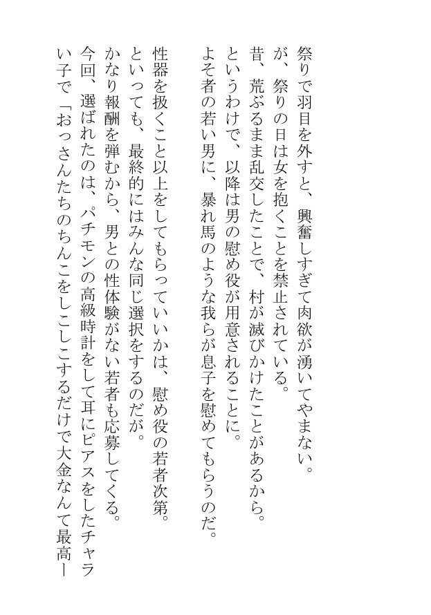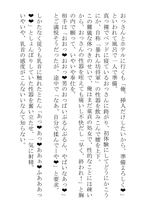 ほぼ最初から最後までやってます。 はやく次のお話もでないかなぁと待ってます! 新人の「慣らし」もしているベテラン娼年の視点で描かれる。