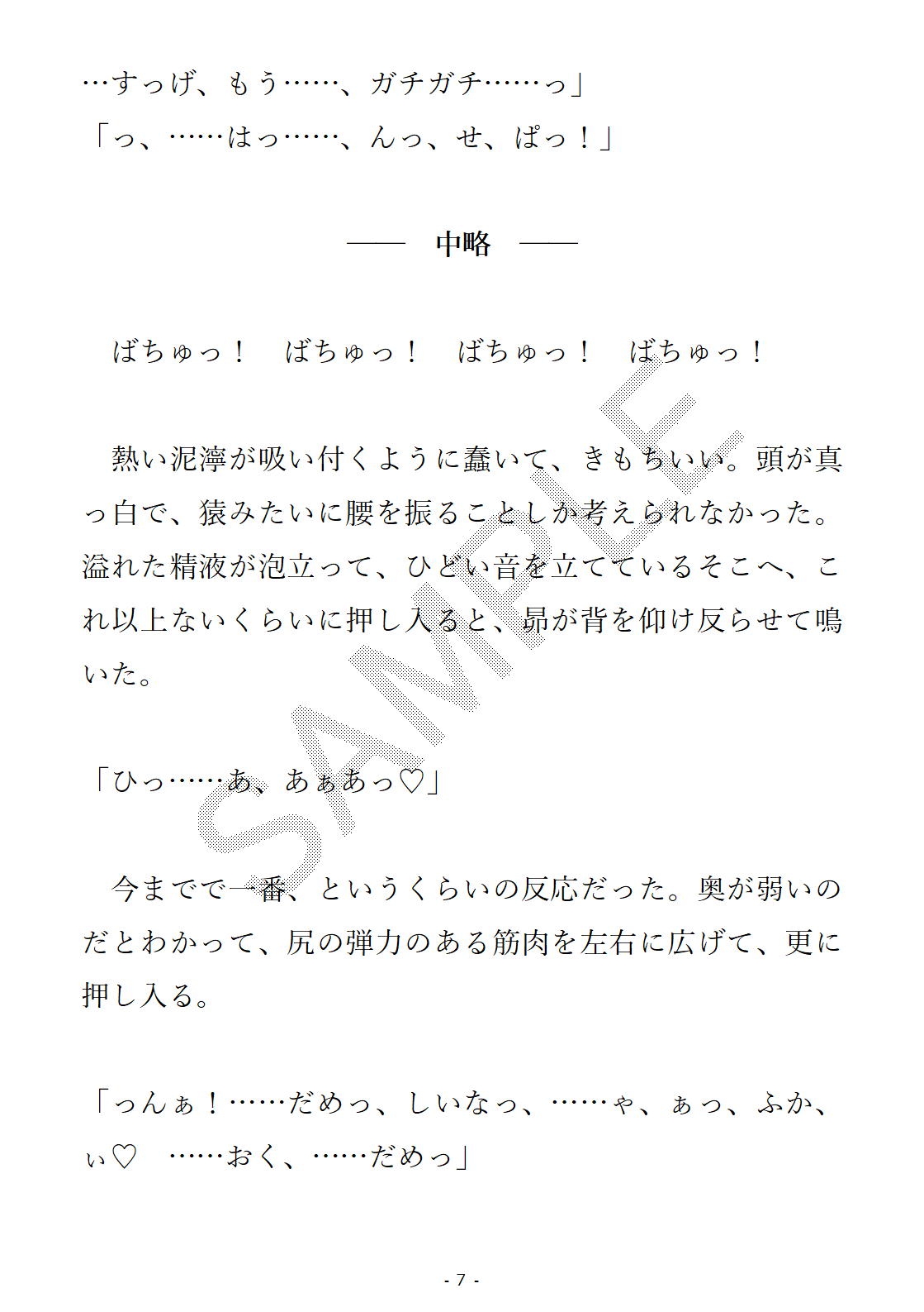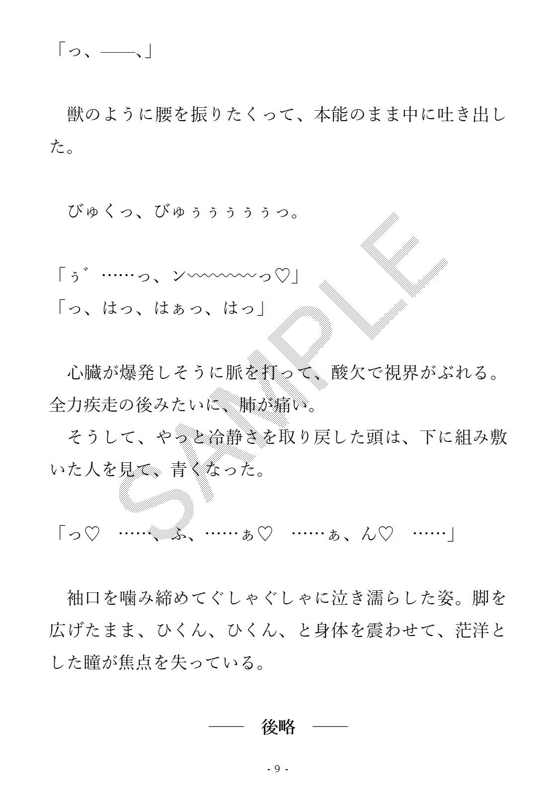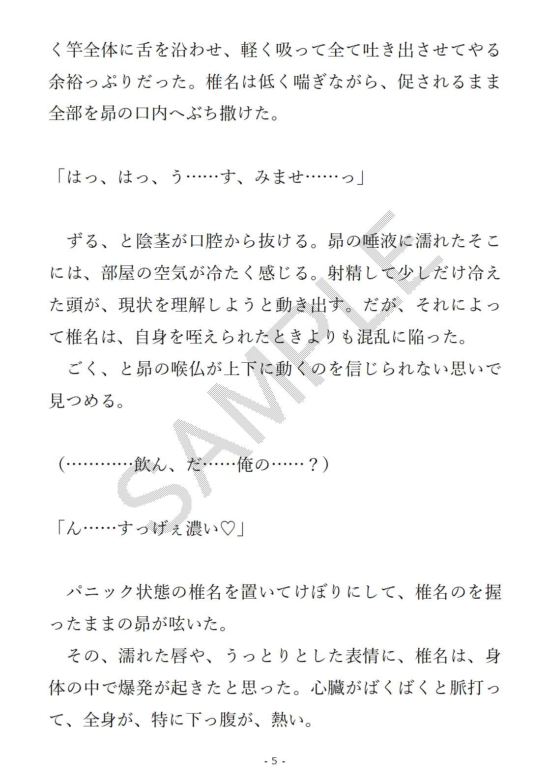 ビッチ受け/襲い受け/♡喘ぎ/痙攣アクメ/童貞攻め/巨根攻め/年下攻め/絶倫/中出し/フェラ/騎乗位/メスイキ/連続絶頂/68ページ(22872字)前後予定 中間試験で赤点をとってしまった椎名は、部活の憧れの先輩・昴に追試の勉強を見てもらえたことで、無事追試をパスする。