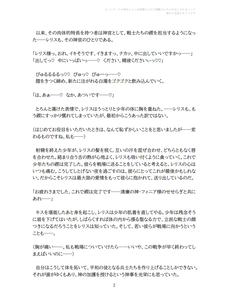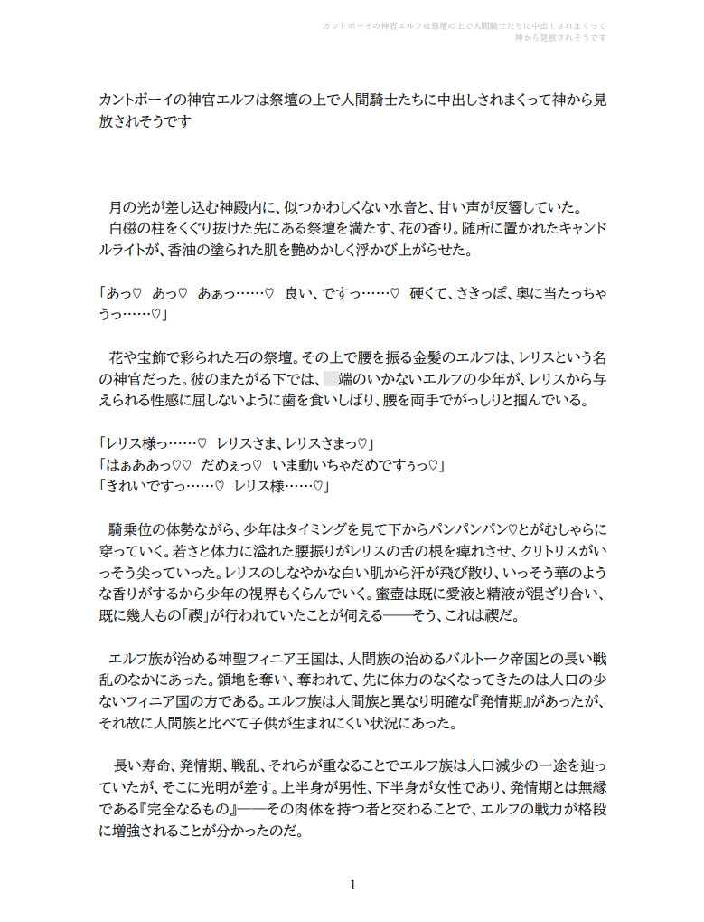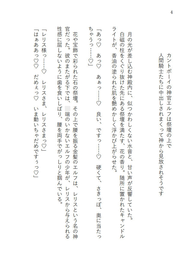 - カントボーイの神官エルフは祭壇の上で人間騎士たちに中出しされまくって神から見放されそうですってどんな作品?