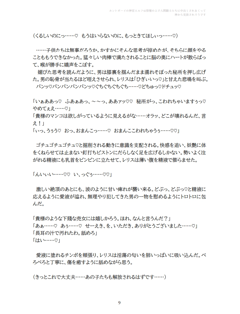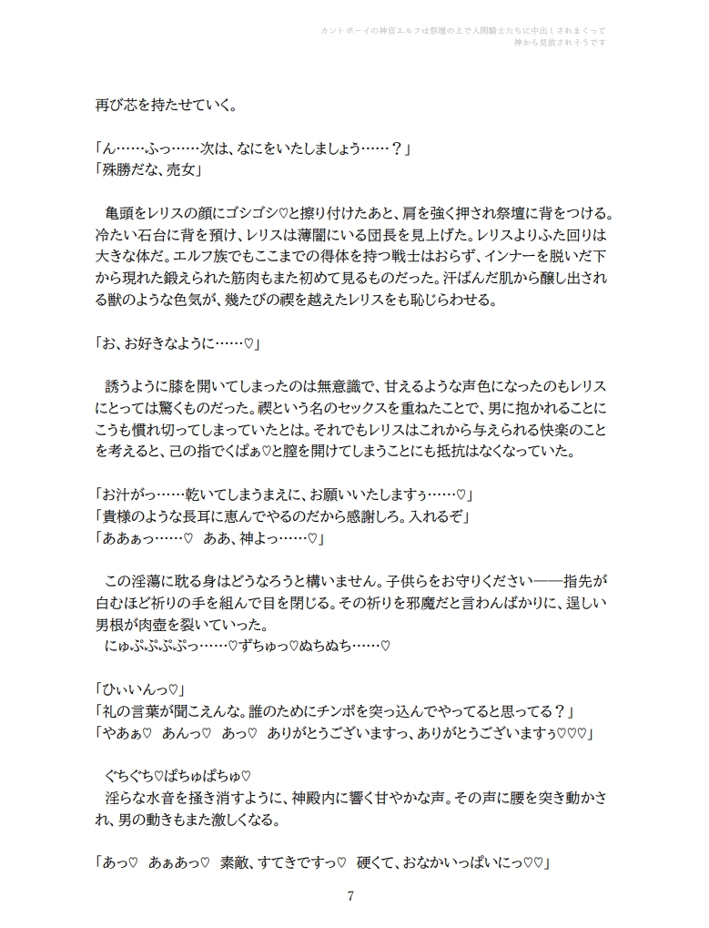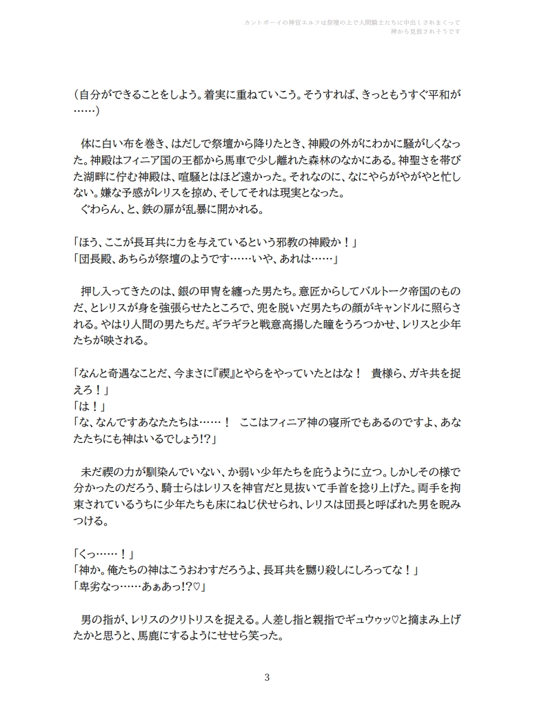 カントボーイの神官エルフは祭壇の上で人間騎士たちに中出しされまくって神から見放されそうです