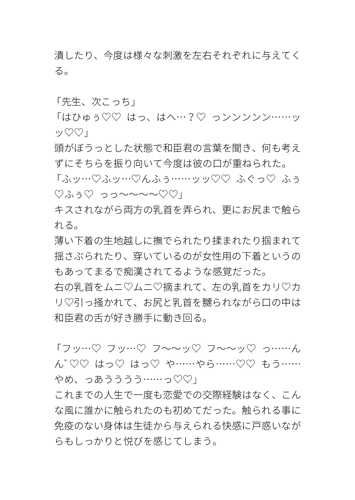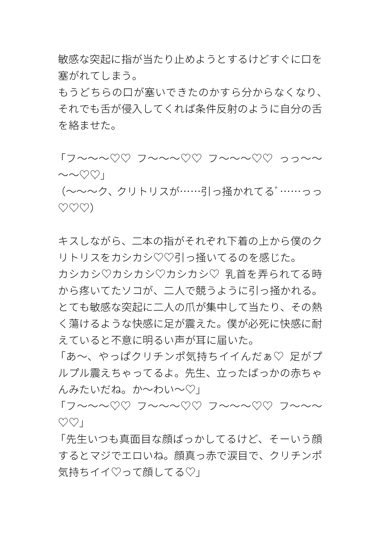 カントボーイ/3P/クリ責め/乳首責め/クンニ/中出し/ハート喘ぎ/濁点喘ぎ/擬音表現