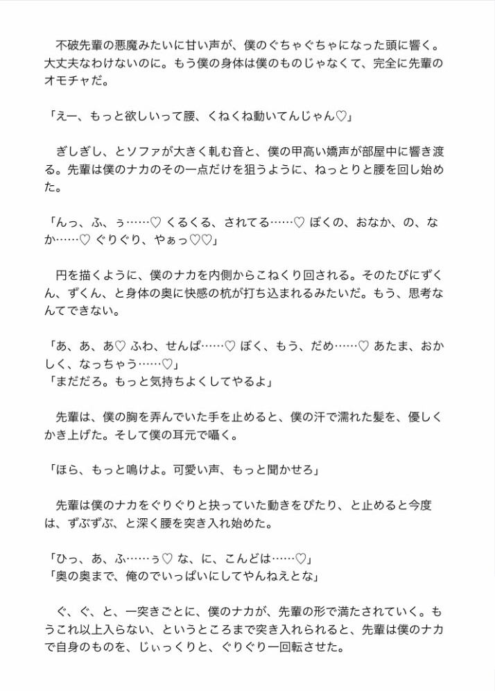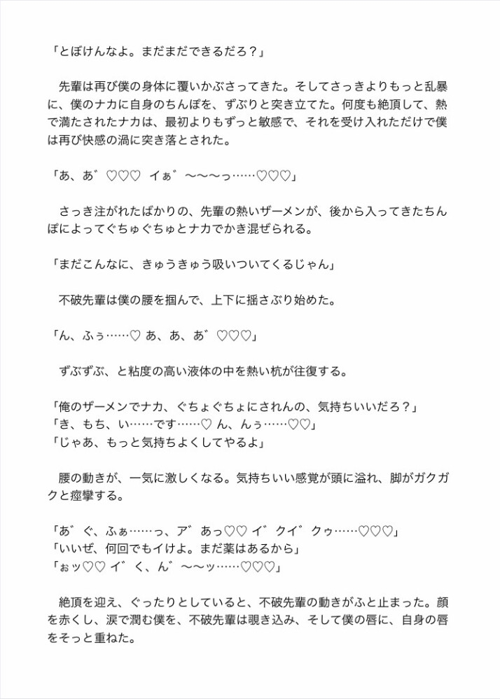 https://www.pixiv.net/novel/show.php?id=26268648 「不良×陰キャ」の王道カップリングに媚薬を追加しました♡ 形式 : PDFファイル(角ゴシック/明朝フォントの2種同梱) 横書き形式の文章文字数 : 21,334文字(♡、記号含む)章構成 : 全1章