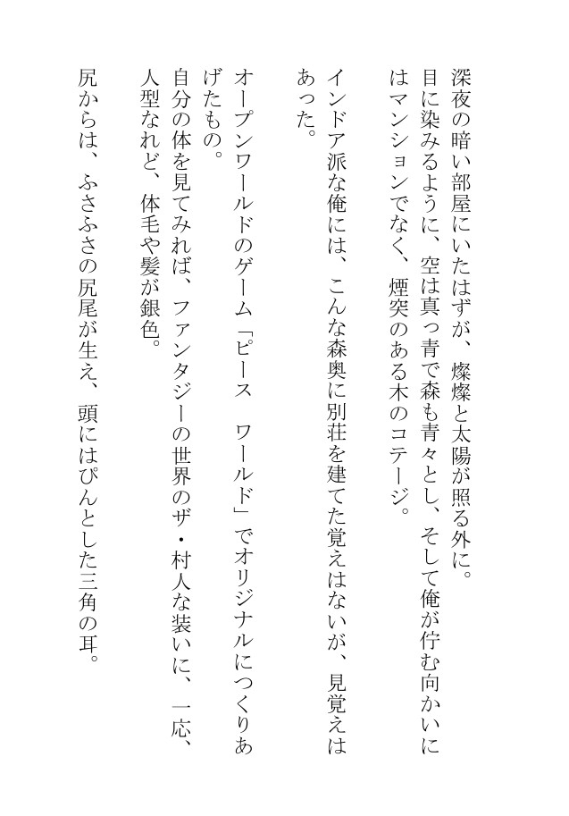 ゲームの世界に転生して、スローライフを満喫していた狼族のシンバ。しばらくは平穏だったのが、本来のゲームらしくない展開になり「世界の果て」を目指すことに。すこしだけアダルトな描写ありのR18。