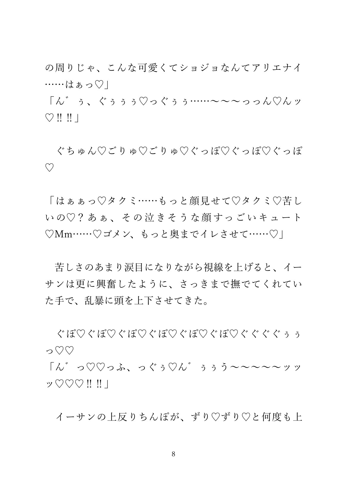 露天風呂で背中流して上げたりお世話してたところに、唐突にサカられて、規格外のち〇ぽで責めされてます。最初は洗い場でイマラチオされたり、ヌルついた手で体中をくまなく洗われながら、最終的には騎乗位で露天風呂内で犯され、その後は、浴衣着衣でお布団の上で正常位で向かい合いながらキスハメ甘トロセックスしてます。