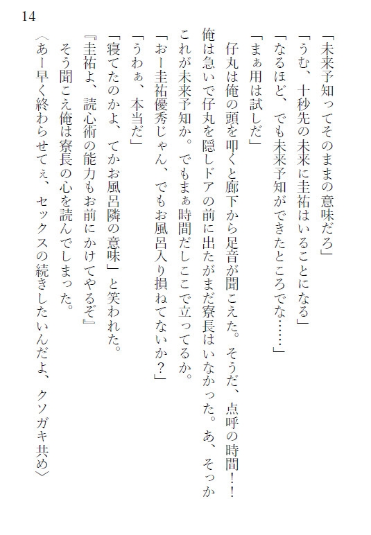 作品に含まれるプレイ学園BL/禁断の恋/α×Ω/α×α/読心術/修学旅行/秘密の恋/甘く切ない/絶対に触れてはいけないルール/ペナルティー/断面図/玩具プレイ/異物挿入/思春期の男子/青春/両片想い……etc