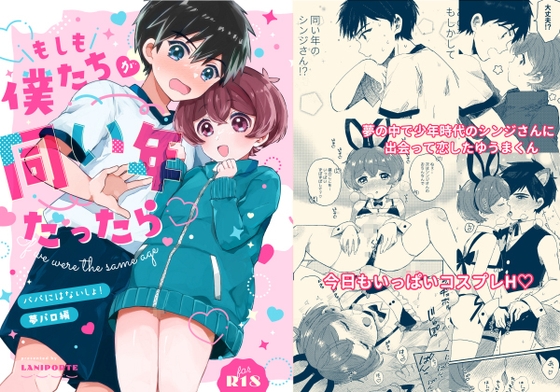 E*ye Shield 21 doujinshi feat. Sakuraba and Susumu who are somehow Kappa (water imp) here. This is a Boys-love themed including sexual scenes of male characters (sexual intercourse etc).