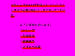 真也編紹介文ボス(あなた)×秘書。攻め視点です。【以下の要素が含まれます】○メスお兄さん○よしよしプレイ○すけべ衣装○軽度のトリップ要素総文字数5596文字。一...