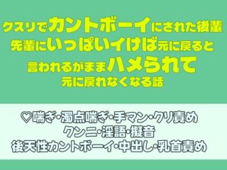 クスリでカントボーイにされた後輩、先輩にいっぱいイけば元に戻ると言われるがままハメられて元に戻れなくなる話
