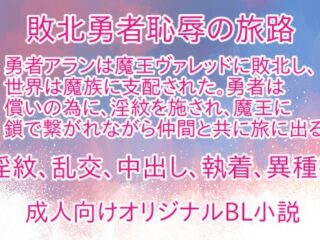 勇者アランは魔王ヴァレッドに敗北し、世界は魔族に支配された。勇者は償いの為に、世界中の人々へ謝罪をして回る事を決意。しかし魔王の許可の条件は、人間の男達の精液を...