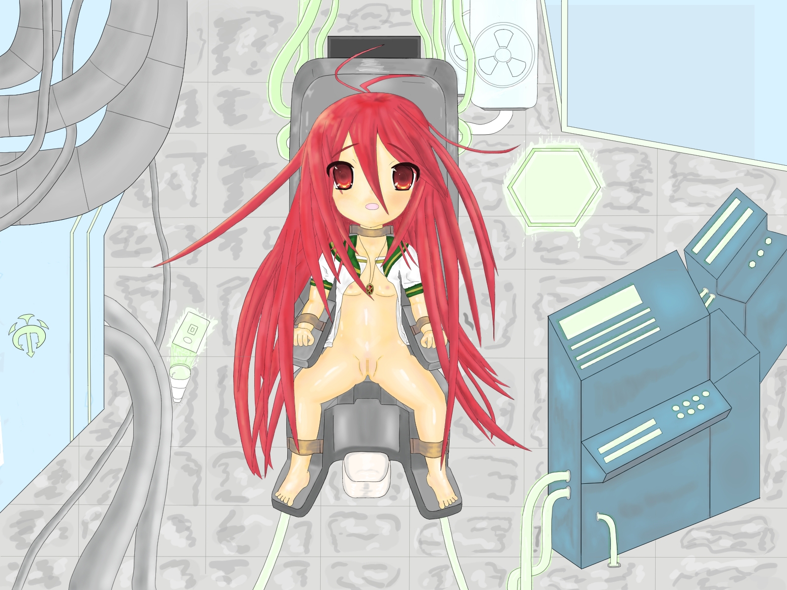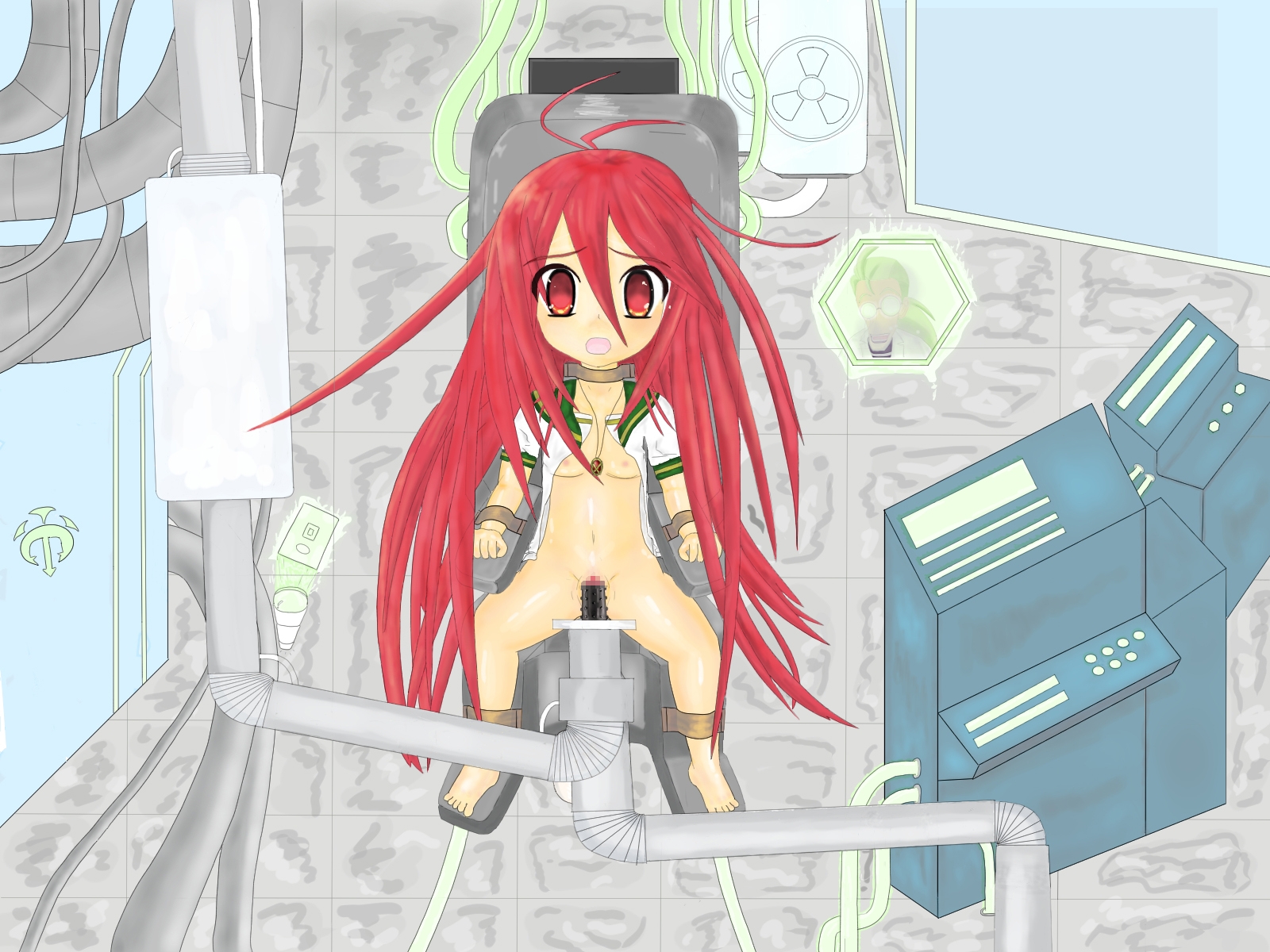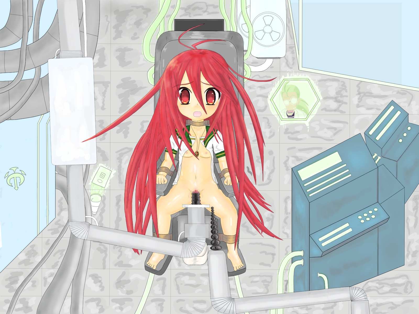 炎髪灼眼の少女が教授に拘束されてしまうイラストです。