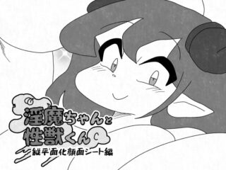 淫魔ちゃんと性獣くん~縦平面化顔面シート編~