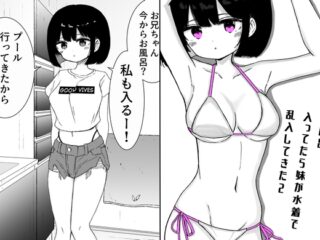 夏休み、お風呂に入ろうとしたら妹がプールから帰ってきて…「お兄ちゃん今からお風呂?私も入るー!プール行ってきたからベタベタだよー」「でもその前に…今日の水着見せ...