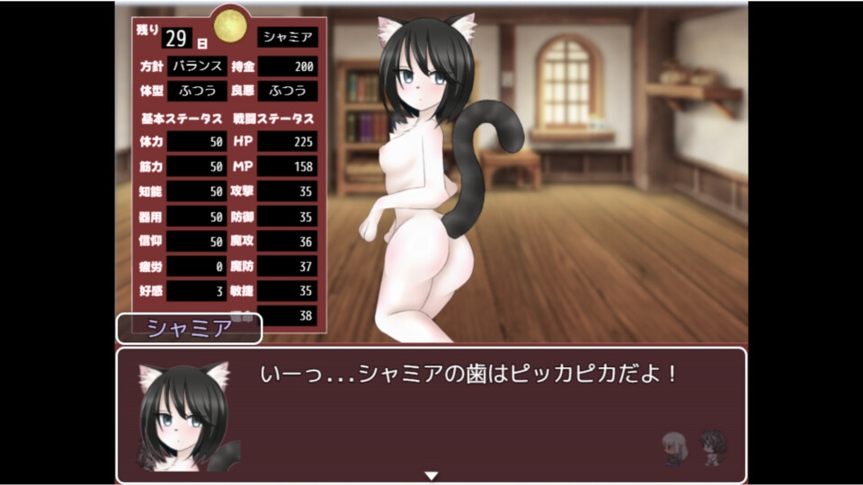 使い魔「シャミア」を育て、スキルや能力を鍛える育成RPG