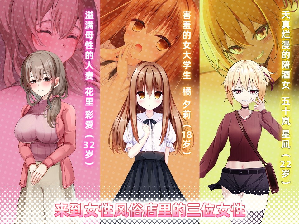・五十岚 星凪 年龄:22岁天真烂漫的陪酒女。性欲相当强烈,压力积累时更是欲火焚身……“想享受疯狂的性爱!”经常去女性用风俗店。为了梦想,每天在夜总会奋力拼搏中。 ・类型:女性风俗店模拟游戏・语音 :仅女主角配音・画面尺寸:1280x720・语言 :日语,中文・制作工具:Unity・部分使用AI:仅用于背景 OS:Windows11 64bitCPU :Intel Core i7-9750H 2.60GHz内存:16 GB RAMHDD:2 GB以上的空间VIDEO:Intel UHD Graphics 630DirectX:Version 12其他:分辨率1280×720以上 ※作品介绍文章由制作方提供。