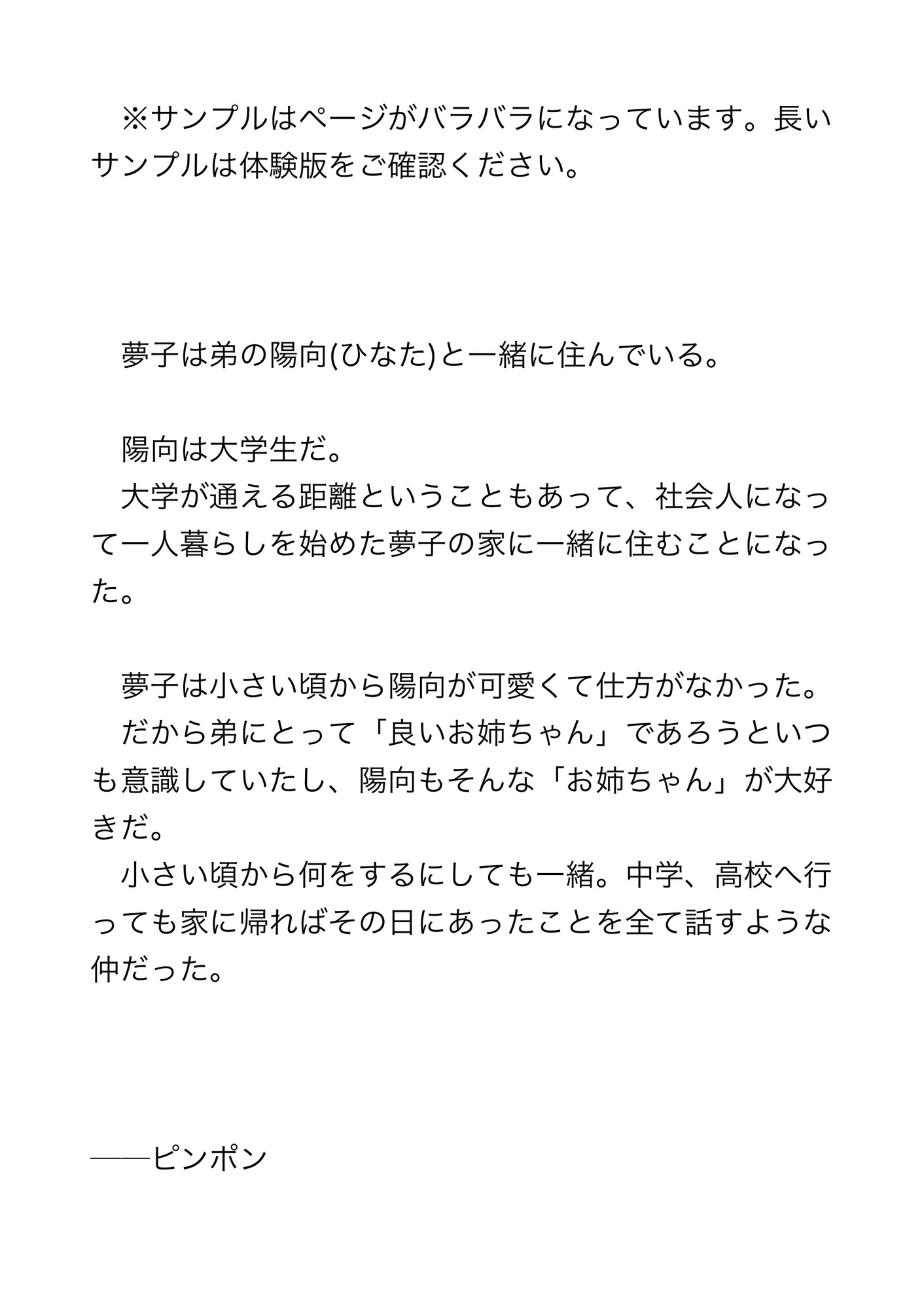 小さい頃から陽向が可愛くて仕方がなかった。だから弟にとって「良いお姉ちゃん」であろうといつも意識していたし、陽向もそんな「お姉ちゃん」が大好きだ。