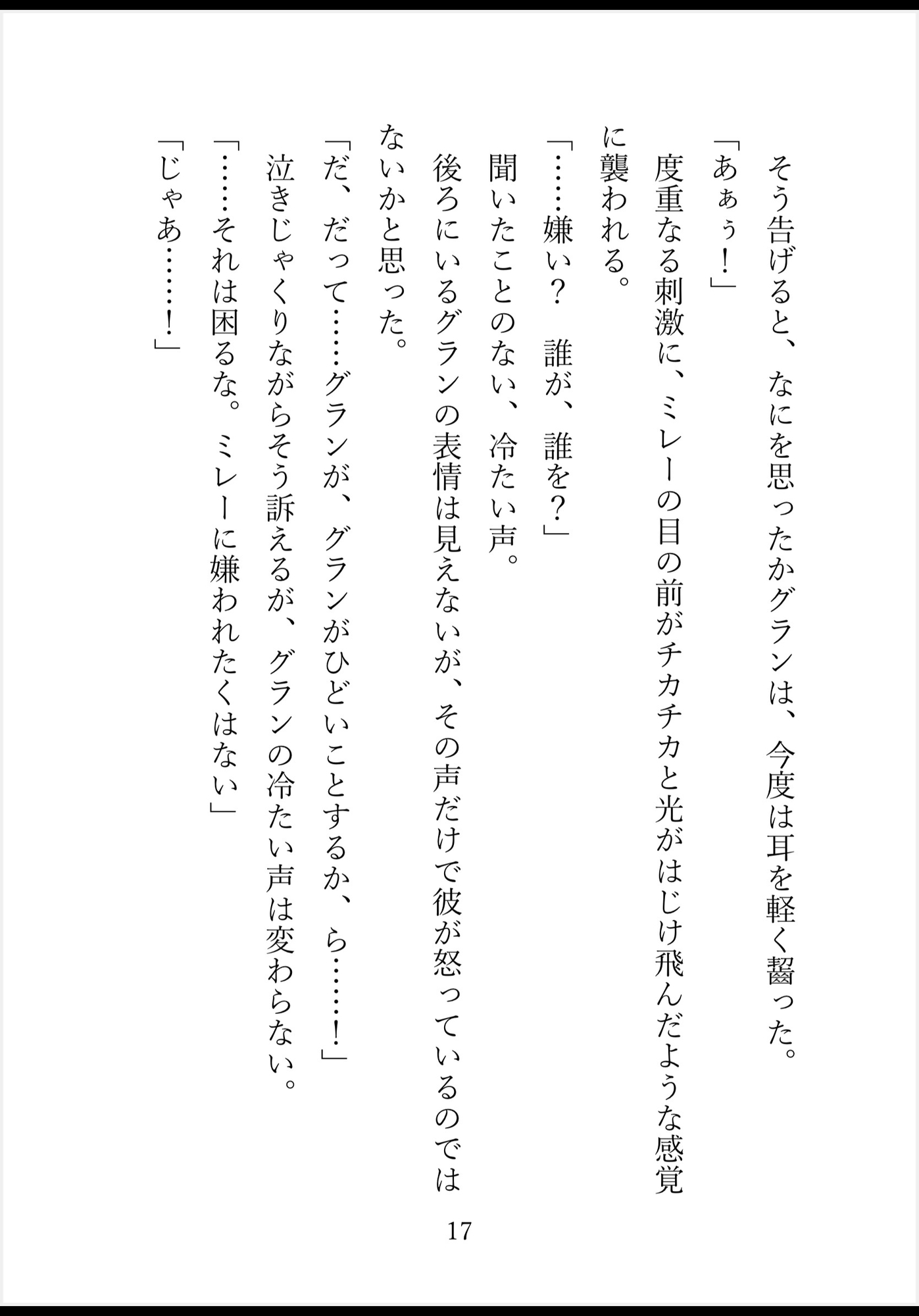 *登場人物*●グラン(オリヴァー・グランディア)・・・グランディア公爵家の子息。ワケあって下町で暮らすこともある自由な青年。ミレーの婚約者で、ミレーが大好き。大好きだが、意地悪な一面もある。