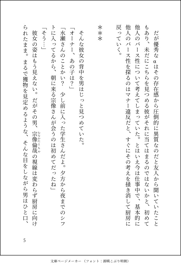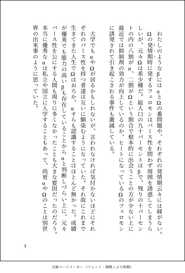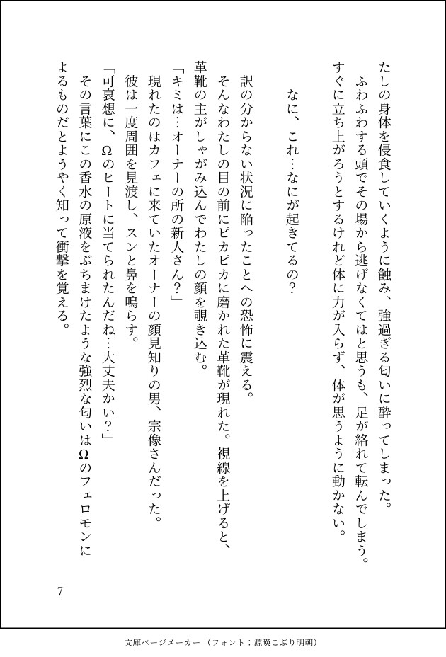 【登場人物】水瀬桃霞(みなせとうか)平凡な大学生のβ。フェロモンに対する耐性が極端に弱い体質。流されやすい性格で強引な相手には抗えない。