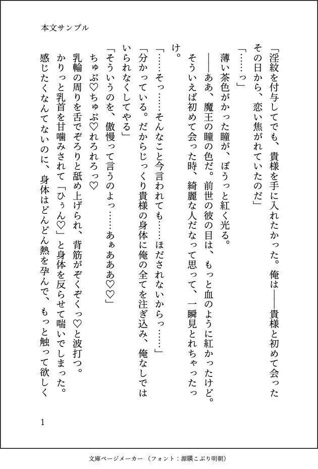 ・勇者アシル※勇者とのHシーンはありません。あなたと共に魔王を倒した張本人。封印の光に巻き込まれあなたと共に転生。ずっとあなたを好きだったが言い出せず、現世こそと奮起する。現代では地質学の研究所に勤めている。 ・淫紋を刻まれ、発情したあなたに魔王がクンニ。クリをネットリ扱かれカサ広ちんぽでまんこの入り口を執拗に責められ奥までずっぽりハメられ処女喪失。・マッサージに訪れた魔王宅のバスルームでスライム責め!クリ責め・尿道・耳穴・乳首穴の三点責めで焦らされ、たまらず自分からおねだりして魔王のちんぽを素股でマンズリ!挿入しようとするもおあずけプレイを食らってしまう。・生ハメおあずけのまま、スライムバイブを挿れて魔王とともにレセプションパーティーへ。エレベーターでスライムバイブが暴走しポルチオ責めで絶頂!そのままホテルの部屋でだいしゅきホールド→窓に身体を押しつけられ外に見せつけセックス!・最後は騎乗位→抱き上げられて対面座位であまあまらぶらぶえっち!!!