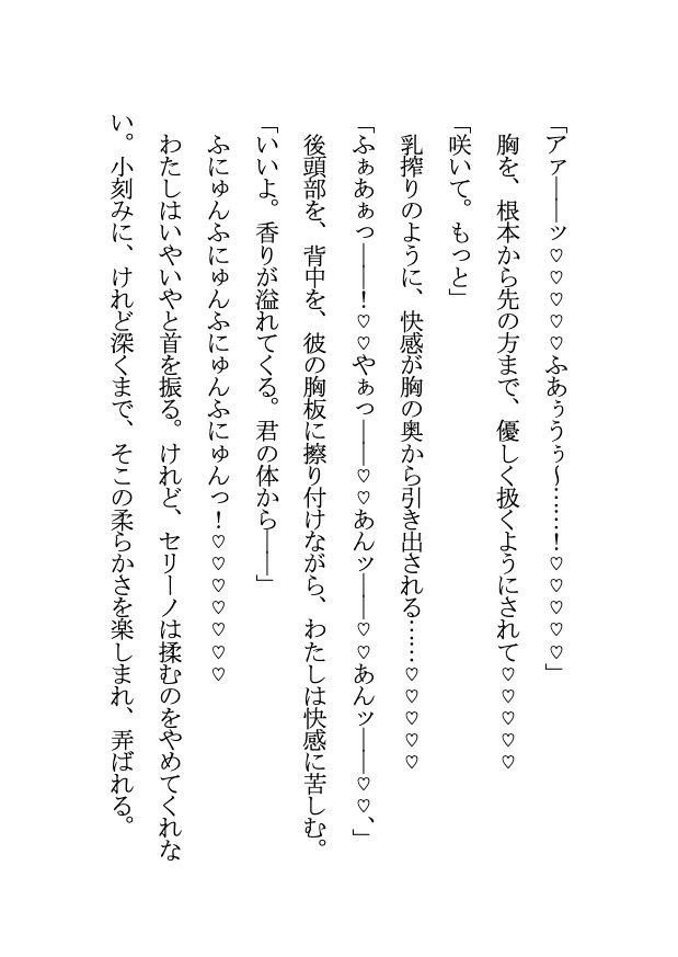 話し相手が欲しかったと語る彼に、園の奥まで導かれ、ララは「特別な花」を見せてもらう。「この花はね、俺の伴侶になってくれる人だけに、見せる花なんだよ」 花の芳しい香りに酔わされる中、甘く濃厚な「求婚」が始まる……。女性の体を花に例える彼に、抵抗を快感で蕩かされ、ララは身も心も恍惚に堕とされていく……