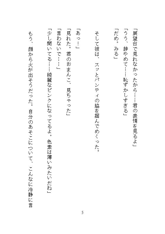 向かったのは、地元の小高い丘にある展望台。風に吹かれながら交わした初めてのキス、そしていきなりの……。